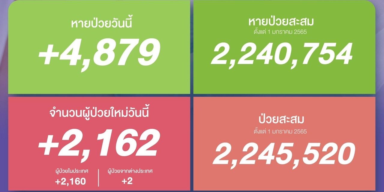 หายป่วยสะสม 2,240,754 ราย (ตั้งแต่ 1 มกราคม 2565)