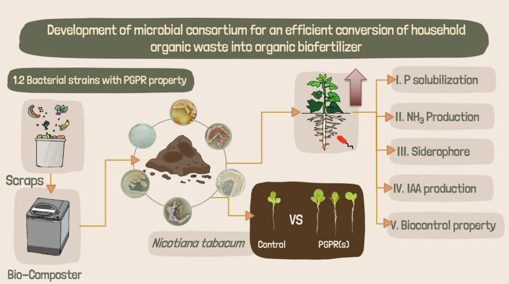 นอกจากนี้ยังมีการทดสอบคุณสมบัติเบื้องต้นในเชิงคุณภาพของจุลินทรีย์ที่มีความสามารถในการย่อยสลายขยะอินทรีย์ และจุลินทรีย์ที่มีความสามารถในการกระตุ้นการเจริญเติบโตของพืชจากธรรมชาติ
