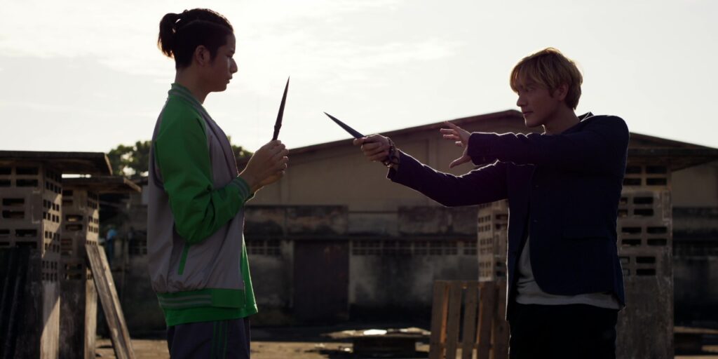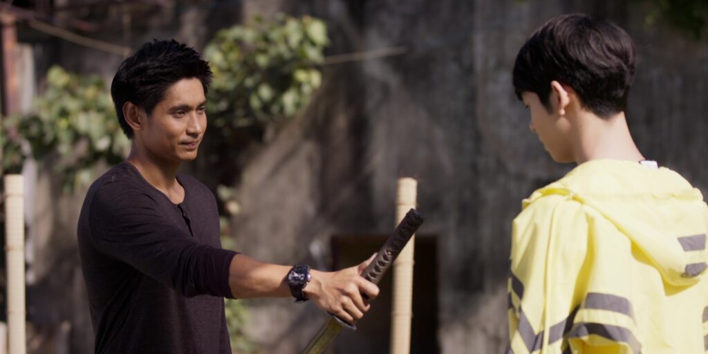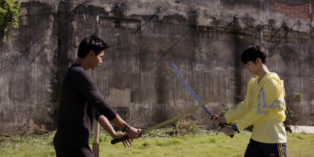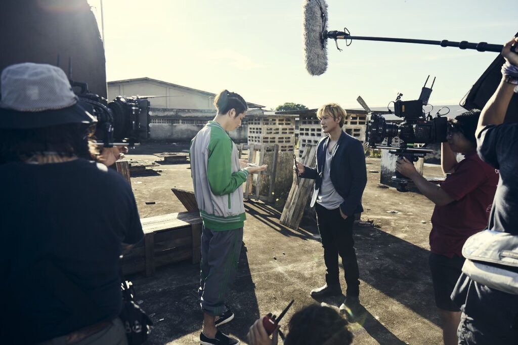 จากนั้นก็ย้ายไปถ่ายทำด้านนอกอีก 2 คู่ คู่แรก ธันน์ กับ หนุ่มเจมส์ ซึ่งคู่นี้ก็ต้องแสดงออกมาแบบวายๆ หน่อย เพราะ หนุ่มเจมส์ ในบท นัท ก็แอบชอบ สเว็น อยู่แล้ว ยิ่งได้มาเรียนกับ สเว็น ก็ทำให้หัวใจพองโตขึ้นไปอีก แต่ นัท ก็ตั้งใจฝึกอย่างดี เพราะไม่อยากให้ สเว็น เสียความตั้งใจ ด้าน หนุ่มเพลิงกับหนุ่มรีวอร์ด นั้นก็ดูเข้าขาเป็นอย่างดี ต่อไดอะล็อกกันแบบไหลลื่น ไม่มีติดขัด รวมทั้งการสอนใช้มีด ซึ่งหนุ่มเพลิงก็ใช้เป็นอย่างผู้ชำนาญการอยู่แล้ว ส่วนหนุ่มรีวอร์ดนั้นก็เหมือนกับได้ทดลองการใช้มีดสั้นจริงๆ จึงตั้งใจมาก เพราะถือว่าได้วิชาการใช้มีดเพื่อป้องกันตัวเองไปในตัวด้วย