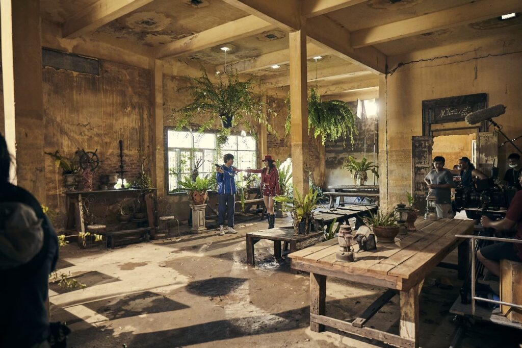 เมื่อทุกอย่างพร้อม การถ่ายทำก็เริ่มขึ้น นักแสดงแต่ละคนก็ต่อไดอะล็อกไปตามบทบาทที่ได้รับ เมื่อเสร็จสิ้นฉากนี้ ผู้กำกับฯ ก็ขอถ่ายทำฉากต่อไปทันที เหลือเพียง หนุ่มจุง จีน่า และฟลุ๊ค ที่ จีน่า ต้องสอนท่าทางการยิงปืนแบบไร้ขีดจำกัด แต่ละท่าขอบอกว่า ได้จิต ได้ใจมั่กๆ ที่ใครได้ดูแล้วต้องบอกว่า ฮาได้โล่….จริงๆ
