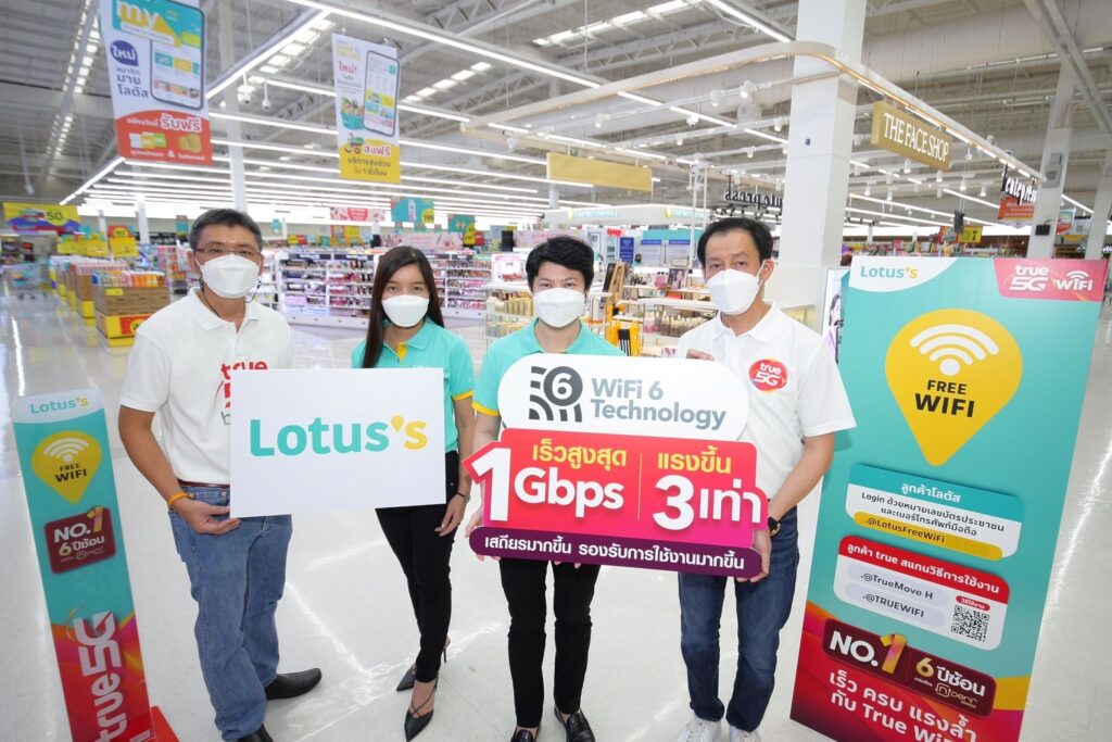 ก้าวสู่การเป็น SMART Community Center อย่างแท้จริง โลตัส ร่วมกับ ทรู 5G พร้อมยกระดับการให้บริการลูกค้ายุคดิจิทัล เพื่อเป็นธุรกิจค้าปลีก 4.0 แห่งแรกในประเทศไทย นำเทคโนโลยีใหม่ล่าสุด WiFi 6 ที่ให้ความเร็วสูงสุดถึง 1 Gbps และมีความเสถียรมากขึ้นถึง 3 เท่า มาให้บริการลูกค้าโลตัส ในไฮเปอร์มาร์เก็ตทั้ง 226 สาขาฟรี ติดตั้งมากกว่า 8,000 จุด ทั่วประเทศ พร้อมมอบสิทธิพิเศษต่างๆ สำหรับลูกค้าทรูมูฟ เอช และโลตัส อีกมากมายเพราะ “คบกับทรู ดียิ่งกว่า เร็ว ครบ แรง ล้ำ”