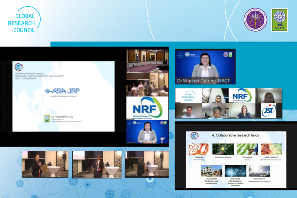 ดร.วิภารัตน์ ดีอ่อง ผู้อำนวยการสำนักงานการวิจัยแห่งชาติ และ Governing Board Member of Global Research Council (GRC) ร่วมนำเสนอแนวทางการให้ทุนวิจัยแบบพหุภาคีในการประชุมหัวข้อ “Multilateral funding for research: What are the challenges? What is the role of the GRC?” ซึ่งจัดขึ้นภายใต้การประชุมสภาวิจัยโลก (GRC) ประจำปี 2565 เมื่อวันที่ 31 พฤษภาคม 2565 ที่ผ่านมา ณ ประเทศปานามา ในรูปแบบ Hybrid ร่วมกับผู้แทนอีก 4 หน่วยงาน ได้แก่