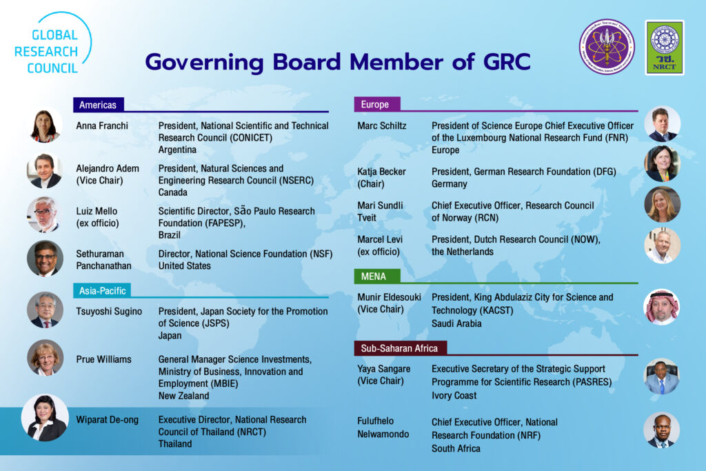(วช.) ภายใต้กระทรวงการอุดมศึกษา วิทยาศาสตร์ วิจัยและนวัตกรรม (อว.) ได้เข้าร่วมการประชุม GRC Annual Meeting อย่างต่อเนื่องทั้งหมด 3 ครั้ง ครั้งแรกในปี พ.ศ.2557 ณ สาธารณรัฐประชาชนจีน และครั้งที่ 2 ในปี พ.ศ.2558 ณ ประเทศญี่ปุ่น และครั้งสุดท้ายเมื่อเดือนพฤษภาคม 2561 โดย ศ.นพ.สิริฤกษ์ ทรงศิวิไล อดีตเลขาธิการคณะกรรมการวิจัยแห่งชาติ ณ สหพันธรัฐรัสเซีย และเข้าร่วม GRC Regional Meeting ในภูมิภาคเอเชียแปซิฟิก 4 ครั้ง ครั้งแรกในปี พ.ศ.2555 ณ ประเทศญี่ปุ่น ครั้งที่ 2 ในปี พ.ศ.2556 ณ สาธารณรัฐเกาหลี และถัดมาในปี พ.ศ.2562 ดร.วิภารัตน์ ดีอ่อง รองผู้อำนวยการสำนักงานการวิจัยแห่งชาติ ในขณะนั้น ได้เข้าร่วมประชุม ณ ประเทศอินโดนีเซีย และครั้งล่าสุดเมื่อเดือนกุมภาพันธ์ 2564 ในฐานะรักษาการผู้อำนวยการสำนักงานการวิจัยแห่งชาติ ผ่านการประชุมออนไลน์ โดยมี ศ.นพ.สิริฤกษ์ ทรงศิวิไล ปลัดกระทรวง (อว.) เข้าร่วมด้วย