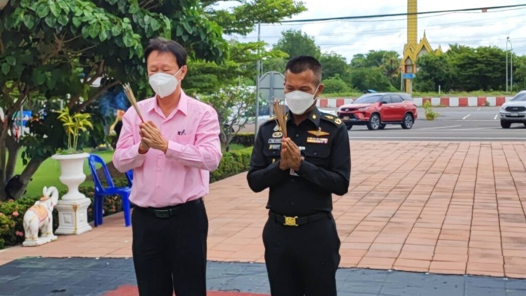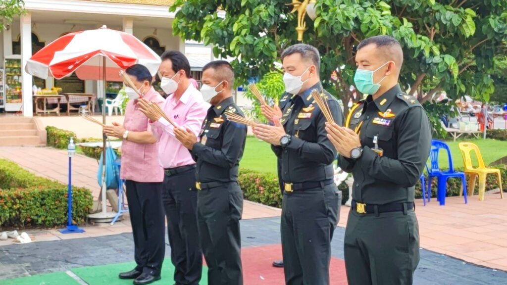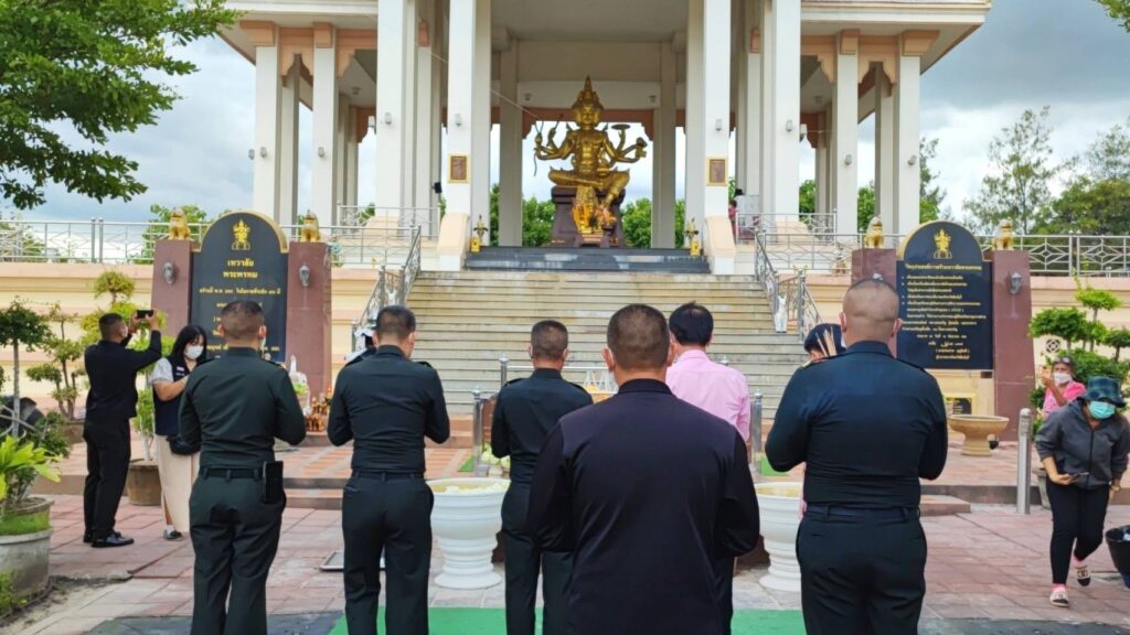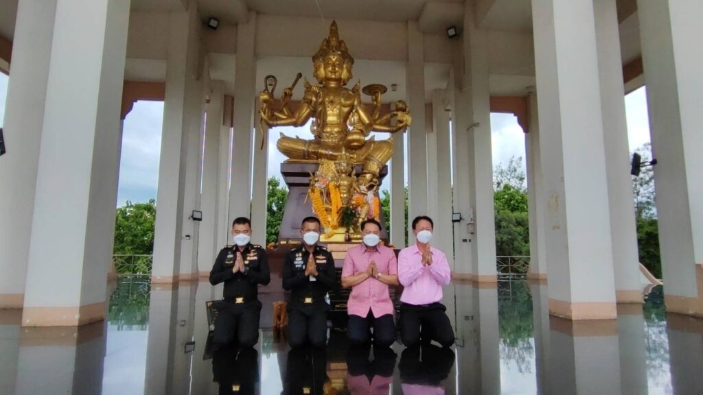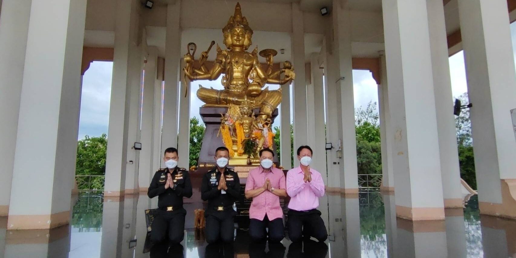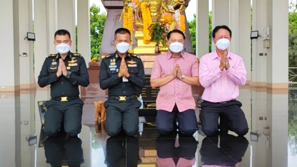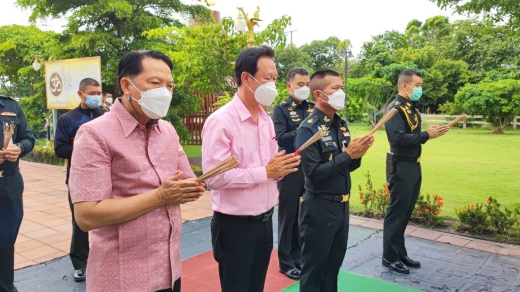 วันนี้ วันที่ 7 มิถุนายน 2565 เวลา 13.30 น. พล.ต.วิรัฎฐ์ วงษ์จันทร์ หัวหน้าสำนักงานเลขานุการคณะกรรมการพัฒนาเพื่อความมั่นคงในระดับพื้นที่ในเขตกองทัพภาคที่ 1 (หน.สล.พมพ.ทภ.1) พร้อมคณะ และ พล.ต.ธนสิน สุขโข ผู้บัญชาการมณฑลทหารบกที่ 13 และคณะฯ ได้แวะสักการะขอพรองค์เทวาลัยพระพรหม ให้เกิดความโชคดีมีชัยและเป็นศิริมงคล ในโอกาสเดินทางมาร่วมประชุมหัวหน้าส่วนราชการ เพื่อบูรณาการแก้ไขปัญหาในพื้นที่ลุ่มแม่น้ำเจ้าพระยาตอนล่าง โดยมี นายสัมฤทธิ์ กองเงิน รองผู้ว่าราชการจังหวัดสิงห์บุรี พ.อ.ชายธนัญชา วาจรัต รอง ผอ.รมน.จว.สิงห์บุรี และนายวิจิตร เลิศไพบูลย์วงศ์ ประธานสภาอุตสาหกรรมจังหวัดสิงห์บุรี และประธานบริษัทประชารัฐรักษาสัมคคีสิงห์บุรี (วิสาหกิจเพื่อสังคม) จำกัด ให้การต้อนรับ ณ เทวาลัยพระพรหม ตำบลม่วงหมู่ อำเภอเมือง จังหวัดสิงห์บุรี