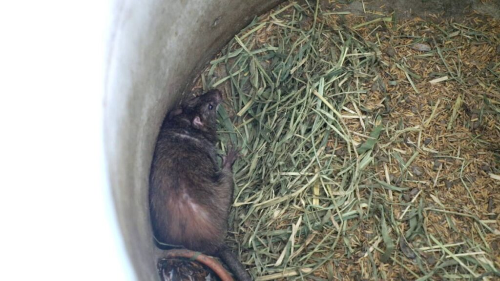 อาหารที่ใช้เลี้ยงหนูก็จะเป็นข้าวเปลือกที่เก็บเกี่ยวจากนาข้าวที่ปลูกไว้ และก็ปลูกหญ้าเนเปียซึ่งเป็นหญ้าตระกูลอ้อยซึ่งหนูจะชอบกิน นอกจากนี้ก็ยังเก็บผลไม้ตามฤดูการจากแปลงเกษตรผสมผสานจำนวนกว่า 4 ไร่ที่ทำไว้มาให้หนูกิน