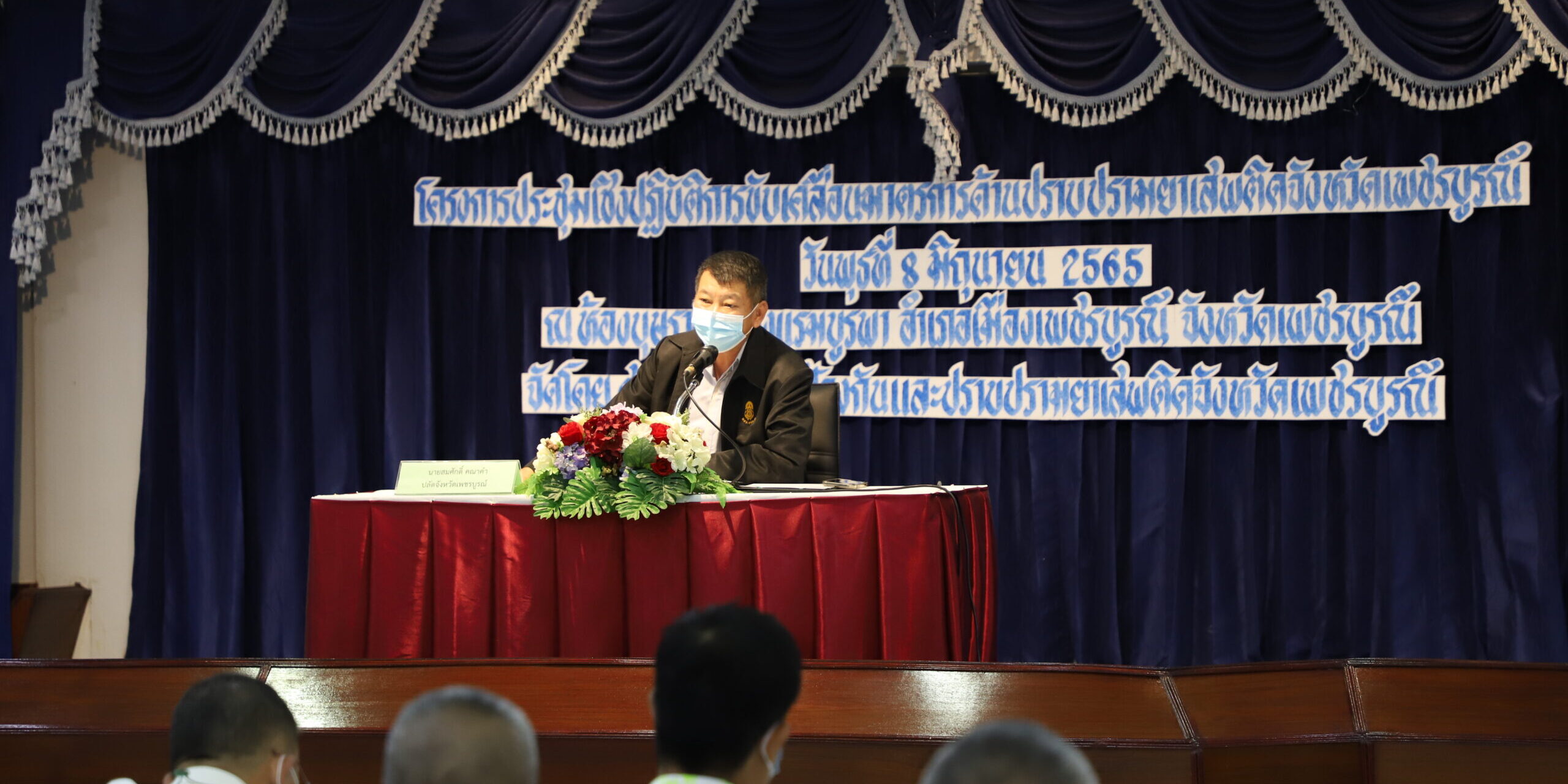 ที่ห้องบุษราคัม โรงแรมบูรพา อำเภอเมืองเพชรบูรณ์ นายสมศักดิ์ คณาคำ ปลัดจังหวัดเพชรบูรณ์ เป็นประธานเปิดโครงการประชุมเชิงปฏิบัติการขับเคลื่อนมาตรการด้านปราบปรามยาเสพติด โดยมี นายสิทธิชัย เจริญศิลป์ เจ้าพนักงานปกครองชำนาญการพิเศษ ปฏิบัติหน้าที่ ศอ.ปส.จ.พช กล่าวรายงาน พร้อมด้วยฝ่ายอำนวยการจากศูนย์อำนวยการป้องกันและปราบปรามยาเสพติด ตำรวจภูธรจังหวัดเพชรบูรณ์ ชุดปฏิบัติการปราบปรามยาเสพติดจากตำรวจภูธรจังหวัดเพชรบูรณ์ ชุดปฏิบัติการปราบปรามเสพติดจากตำรวจภูธร 18 แห่ง ปลัดอำเภอรับผิดชอบงานยาเสพติดจาก 11 อำเภอ และเจ้าหน้าที่ผู้รับผิดชอบโครงการ ศอ.ปส.จ.พช. รวม 55 คน เข้ารับการอบรม