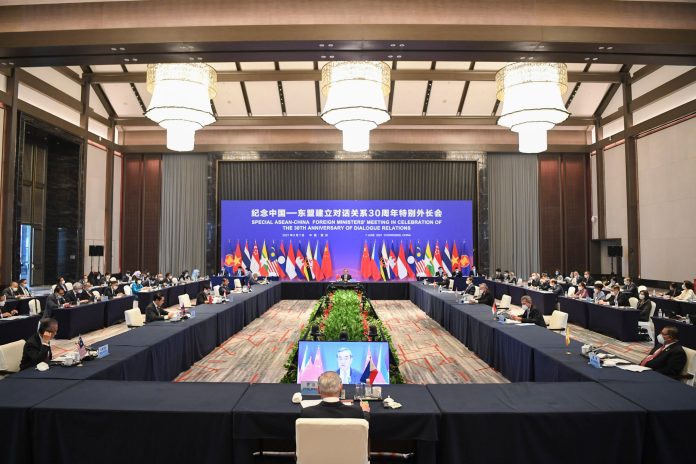 นายหวัง อี้ กล่าวว่า “ยุทธศาสตร์อินโด-แปซิฟิก” (“印太战略”) ของสหรัฐฯ กำลังก่อให้เกิดความตื่นตัวและความห่วงใยในโลกนี้มากขึ้นเรื่อยๆ โดยเฉพาะอย่างยิ่งในประเทศแถบเอเชีย-แปซิฟิก เนื่องจากสิ่งที่เรียกว่า “ยุทธศาสตร์” นี้ถูกเปิดเผย ไม่เพียงแต่ต้องการลบชื่อ “เอเชีย-แปซิฟิก” และโครงสร้างความร่วมมือระดับภูมิภาคที่มีประสิทธิภาพในภูมิภาคเอเชีย-แปซิฟิกเท่านั้น แต่ยังต้องการลบการพัฒนาอย่างสันติที่สร้างขึ้นโดย ความพยายามร่วมกันของประเทศต่างๆ ในภูมิภาค มานานหลายทศวรรษ ทั้งนี้ แนวโน้มปัจจุบันในภูมิภาคเอเชีย-แปซิฟิกคือ การส่งเสริมการรวมตัวในระดับภูมิภาคและสร้างประชาคมเอเชีย-แปซิฟิกที่มีอนาคตร่วมกัน เผชิญกับโลกที่ปั่นป่วนและเปลี่ยนแปลงไป ภูมิภาคนี้ยังคงรักษาความสงบและเสถียรภาพโดยรวม เป็นผู้นำในการขจัดหมอกควันของโรคระบาด โดยมีอัตราการเติบโตของ GDP ในปี พ.ศ.๒๕๖๔ สูงถึง ๖.๓% ซึ่งเป็นผลจากการทำงานอย่างหนักของผู้คนในภูมิภาคเอเชีย-แปซิฟิก