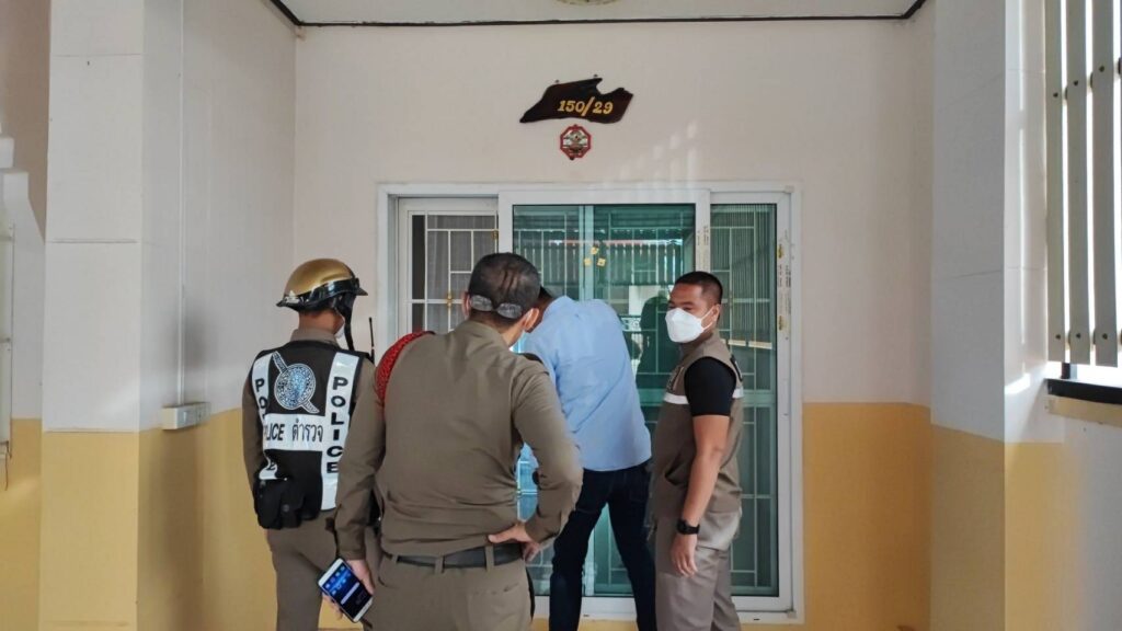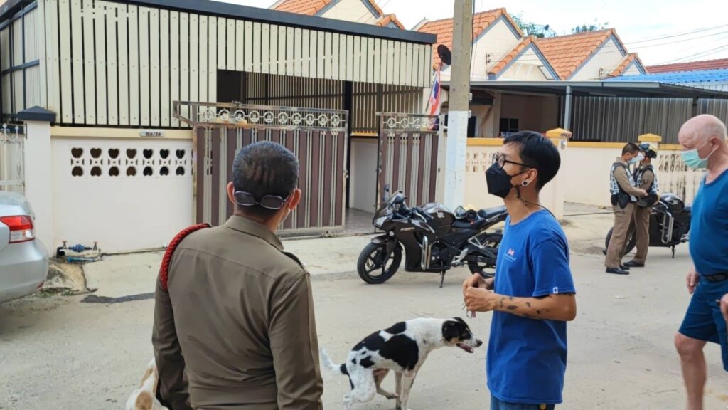 พ.ต.ท.บรรณสิทธิ์ ชัยนวล ร้อยเวร สภ.เมืองสิงห์บุรีและ จนท.ตำรวจ รุดไปยังจุดที่เกิดเหตุ เป็นบ้านเลขที่ 150/29 ในหมู่บ้านมงคลทรัพย์ เป็นบ้านจัดสรรค์ชั้นเดียว ไม่มีผู้อยู่อาศัย โดยนายพงษ์วัช วงษ์ทอง อายุ40ปี ผู้อาศัยข้างบ้าน เล่าว่า เมื่อคืนนี้ตนกลับจากเล่นดนตรีช่วงดึกได้ยินเสียงดังมาจากข้างบ้าน แต่ก็ไม่ได้เอ๊ะใจ นึกว่าเจ้าของบ้านมา เพราะได้เห็นมีรถสายตรวจขับผ่าน