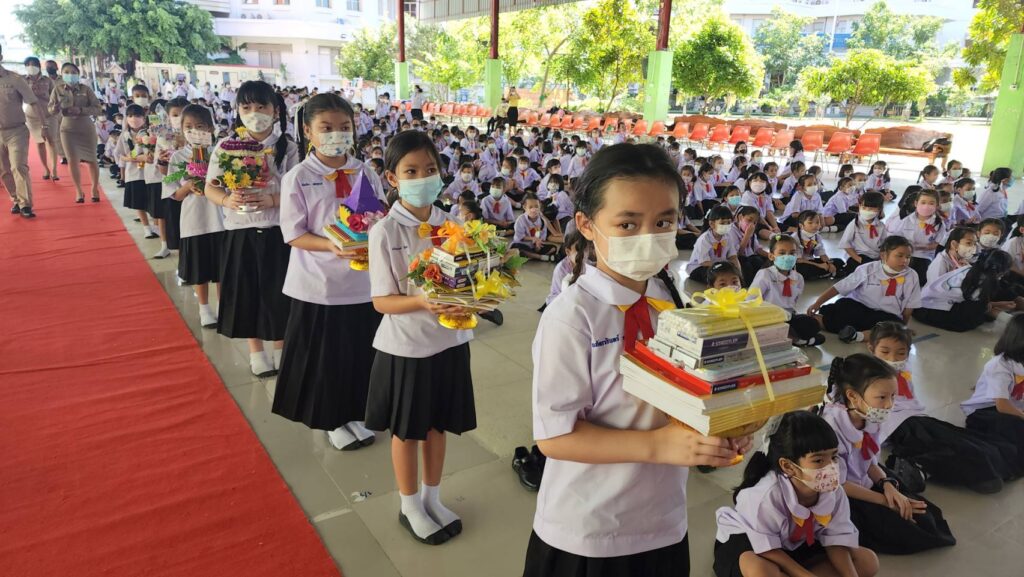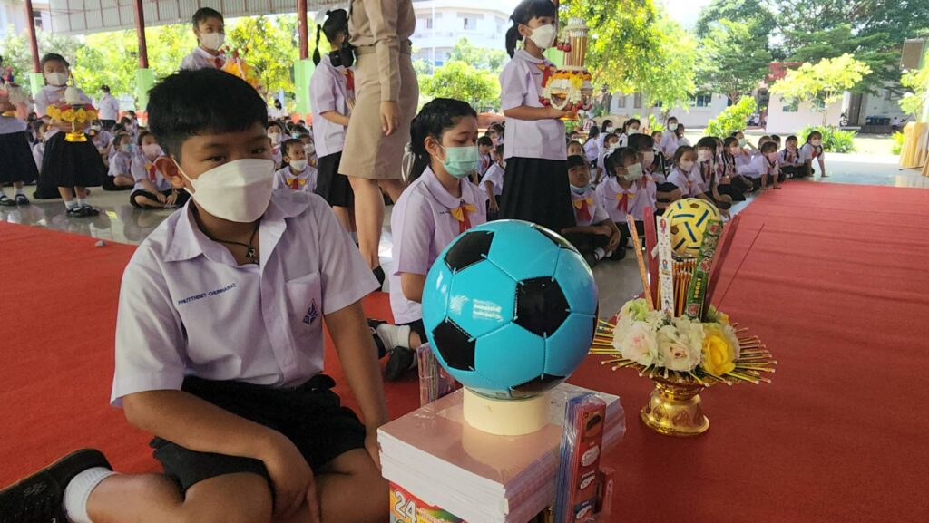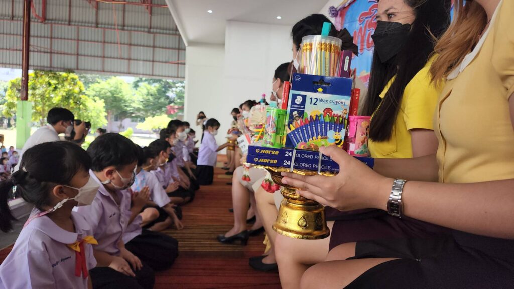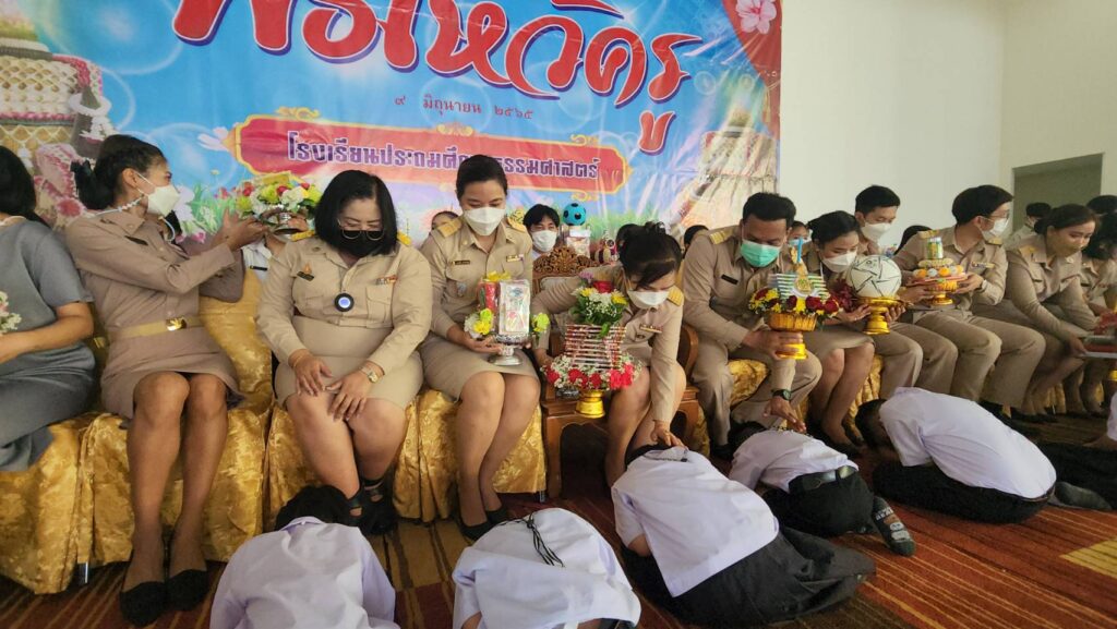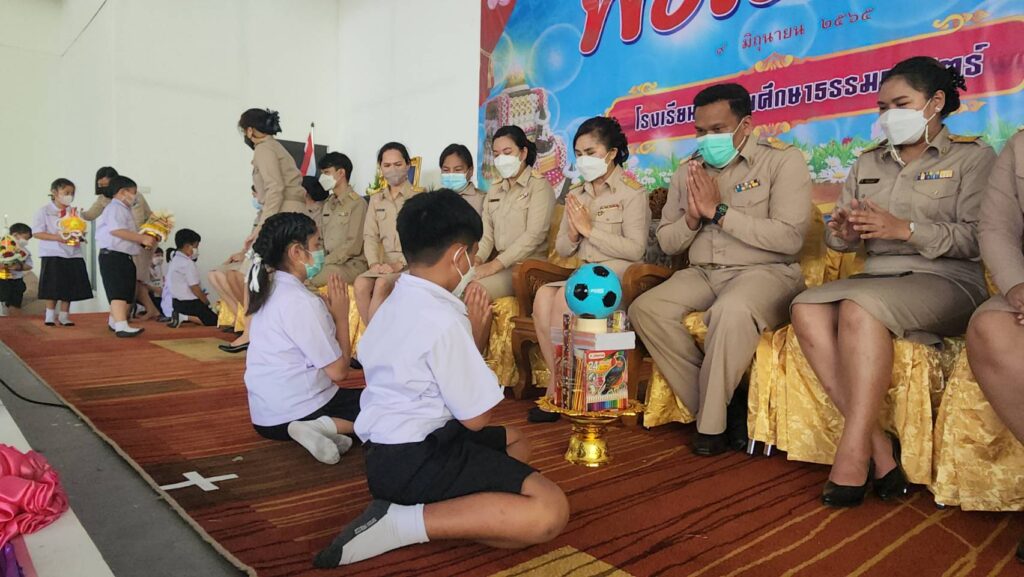 เมื่อเวลา 10.00 น. วันที่ 9 มิถุนายน 2565 ที่ โดมอเนกประสงค์ โรงเรียนประถมศึกษาธรรมศาสตร์ อำเภอคลองหลวง จังหวัดปทุมธานี นางกาญจนาคล้ายพุฒ ผู้อำนวยการโรงเรียนประถมศึกษาธรรมศาสตร์ จัดกิจกรรม วันไหวัครูประจำปี 2565 ขึ้น มีกิจกรรมประดิษฐ์พานพุ่มไหว้ครู ด้วยอุปกรณ์ทางการเรียน และอุปกรณ์กีฬา เพื่อนำไปมอบให้กับโรงเรียนที่ขลาดแคลนในพื้นที่จังหวัดปทุมธานี โดยมี คณะครู บุคลากรทางการศึกษา นักเรียน ผู้ปกครอง เข้าร่วมงานคับคั่ง