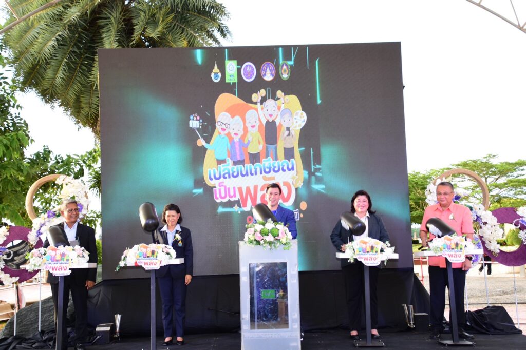 วันที่ 9 มิถุนายน 2565 รองศาสตราจารย์พิเศษ ดร.ดวงฤทธิ์ เบ็ญจาธิกุล ชัยรุ่งเรือง เลขานุการรัฐมนตรีว่าการและโฆษกกระทรวงการอุดมศึกษา วิทยาศาสตร์ วิจัยและนวัตกรรม เป็นประธานในพิธีเปิด และเป็นสักขีพยานในการลงนามความร่วมมือแสดงเจตจำนงในการขับเคลื่อนโครงการ “เปลี่ยนเกษียณเป็นพลัง” ระหว่างกระทรวงการอุดมศึกษา วิทยาศาสตร์ วิจัยและนวัตกรรม (อว.) โดย (วช.) ร่วมกับหน่วยงานที่เกี่ยวข้องอีก 3 หน่วยงาน ประกอบด้วย มนร. จ.สุราษฎร์ธานี และ มรส. เพื่อร่วมกันสร้างและพัฒนาโรงเรียนผู้สูงวัยในรูปแบบ Digital Education & On the job Coaching และ Model กระบวนการจัดการความรู้จากการวิจัยมาเพื่อเพิ่มทักษะ รวมถึงนำหลักสูตรการพัฒนาทักษะการประกอบอาชีพในโรงเรียนผู้สูงวัย Online & Onsite โดย Senior Trainer และ Reskill & Upskill ในทักษะที่เหมาะสมกับผู้สูงวัย เพื่อรองรับวิถีชีวิตใหม่ โดยมี นายวิชวุทย์ จินโต ผู้ว่าราชการจังหวัดสุราฎร์ธานี กล่าวต้อนรับ และ ดร.วิภารัตน์ ดีอ่อง ผู้อำนวยการสำนักงานการวิจัยแห่งชาติ กล่าวความเป็นมาของโครงการฯ และ มี ผศ.ดร.เสน่ห์ บุญกำเนิด รองอธิการบดีฝ่ายวิชาการ วิจัยและนวัตกรรม และดร.มนัสวิน นันทเสน หรือ ติ๊ก ชิโร่ นักร้องนักแสดงเข้าร่วมงานในครั้งนี้ด้วย ณ ลานสะพานนริศ จังหวัดสุราษฎร์ธานี