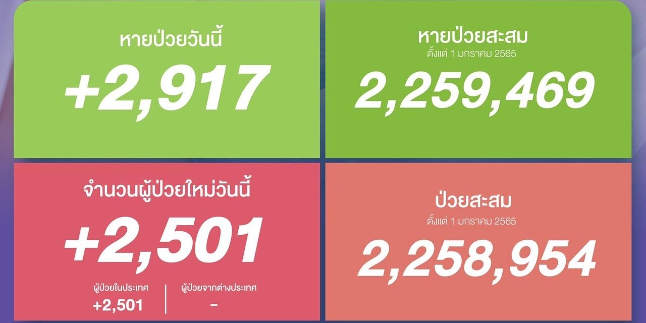หายป่วยสะสม 2,259,469 ราย (ตั้งแต่ 1 มกราคม 2565)