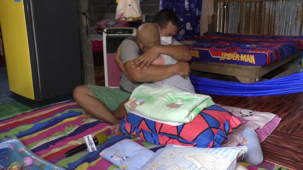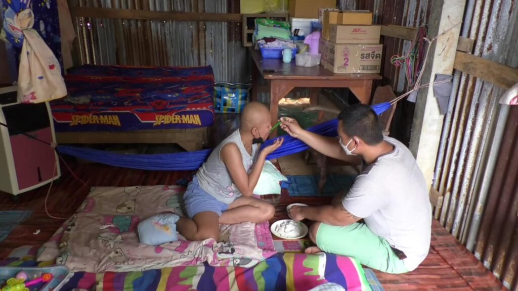 นายสุระชัย ไชยบาล 35 ปี เล่าว่า ตอนที่แฟนตั้งท้องอยู่ก่อนหน้านี้ ตนนั้นทำงานอยู่ที่ อำเภอชนแดน จังหวัดเพชรบูรณ์ อยู่ร้านข้าวสาร ซึ่งตนก็ได้ดูแลพาแฟนไปหาหมอเป็นประจำ ช่วงแรก ก็ลาหยุดอาทิตย์ละครั้ง แต่หลังๆมา พอลาหยุดบ่อย งานที่ร้านข้าวสารไม่คล่องตัว สุดท้ายเจ้าของร้านจึงสั่งให้หยุดงาน ตนจึงเกิดความท้อแท้ ไม่รู้จะหาเงินที่ไหนมาซื้อนมลูก ซึ่งล่าสุด ตนนั้นได้ออกจากงานเมื่อวันที่ 5 มิถุนายน 2565 ที่ผ่านมา เพราะว่าต้องมาดูแลแฟน เพราะว่าพ่อ แม่ ก็ไม่อยู่ ตนนั้นไม่กล้าปล่อยให้แฟนอยู่กับลูกสองคน ล่าสุดนี้ก็เหลือเงินติดตัวอยู่ 25 บาท ถ้าอยากกินน้ำ ก็จะนึกถึงแฟนก่อน ซึ่งปัจจุบันรายได้ที่ได้ก็มาจากเงินที่รัฐบาลสนับสนุนทารก เดือนละ 600 บาท และเงินสนับสนุนประกันสังคม 800 บาท และ เงินพิการของพ่ออีก 800 เอามารวมกันซื้อนมให้ลูก ซึ่งยอมรับว่าเงินนั้นไม่พอ จึงอยากจะหยุดฉายแสงคีโม เพราะเงินไม่มีไปหาหมอ แล้วตนนั้นก็ถูกเลิกจ้าง ซึ่งตอนนี้ก็มีการหยิบยืมจากเพื่อนฝูงบ้าง ซึ่งไม่รู้จะหาเงินจากไหน อาจจะต้องหยุดคีโม ตอนนี้ตนนั้นก็กลัวว่าถ้าหากวิงวอนให้สังคมช่วยเหลือ ตนนั้นก็กลัวว่า จะเอาเรื่องป่วยมาเป็นข้ออ้าง ถ้าหากมีผู้ใจบุญตนนั้นก็จะขอบพระคุณมากที่จะให้การช่วยเหลือ ในเรื่องของผ้าอ้อมน้อง ค่านมน้อง