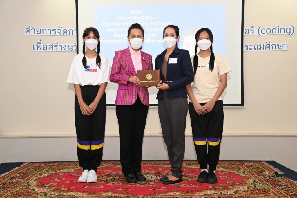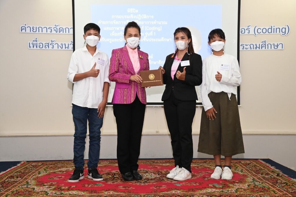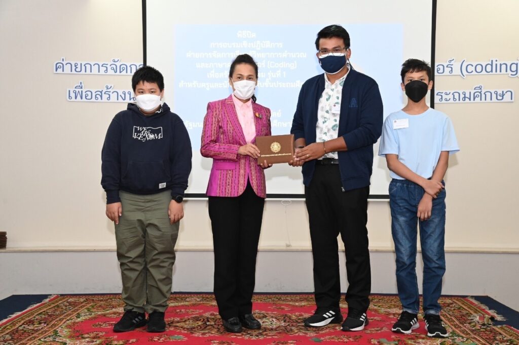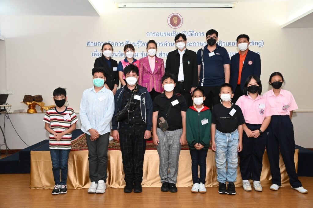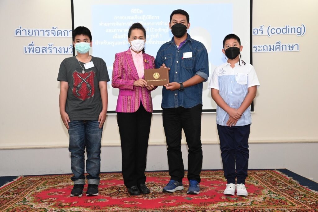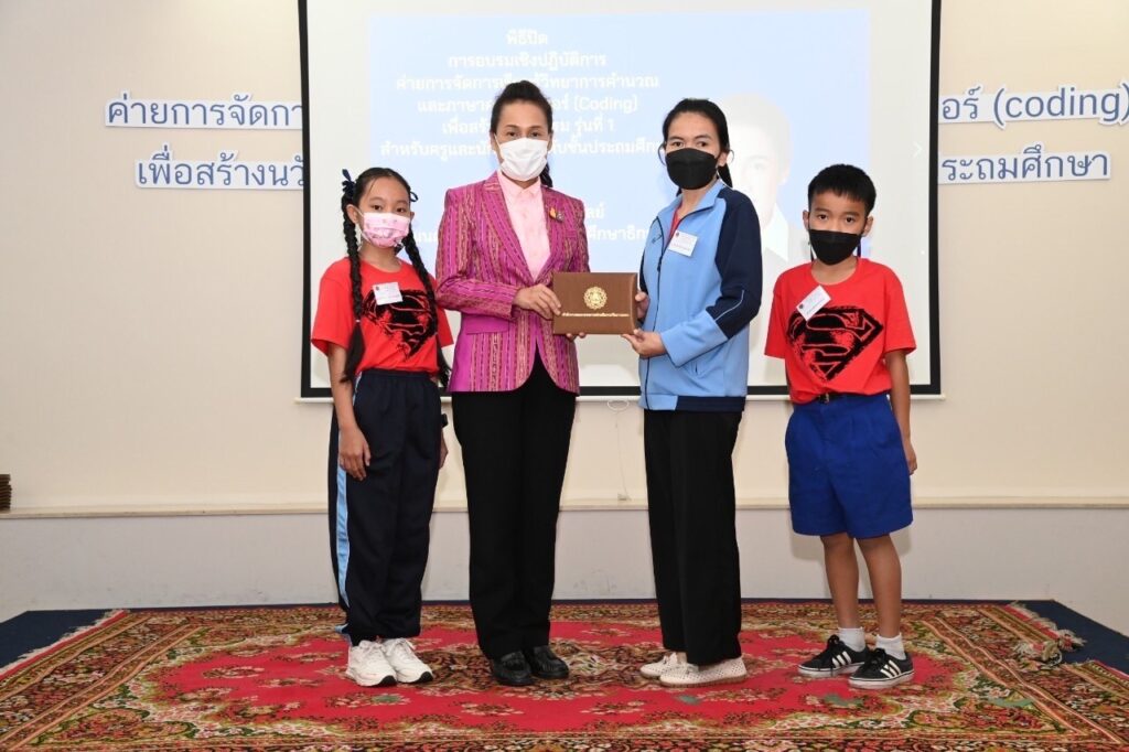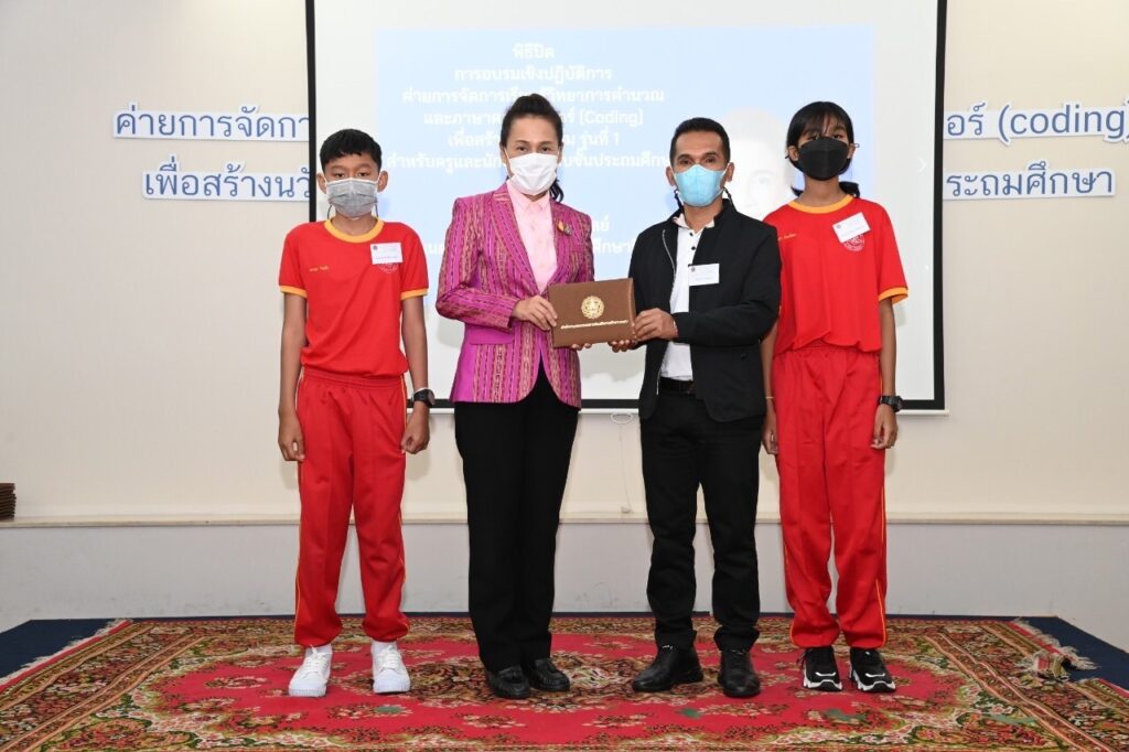 วันที่ 12 มิถุนายน 2565 เวลา 13.30 น. : นางกนกวรรณ วิลาวัลย์ รัฐมนตรีช่วยว่าการกระทรวงศึกษาธิการ (รมช.ศธ.) เป็นประธานในพิธีปิด และมอบวุฒิบัตร “การอบรมเชิงปฏิบัติการค่ายการจัดการเรียนรู้วิทยาการคํานวณและภาษาคอมพิวเตอร์ (Coding) เพื่อสร้างนวัตกรรม รุ่นที่ 1 ระดับประถมศึกษา” โดยมี นายพีรศักดิ์ รัตนะ เลขาธิการคณะกรรมการส่งเสริมการศึกษาเอกชน (เลขาธิการ กช.) ผู้อํานวยการกลุ่มงานโรงเรียนสามัญศึกษา คณะวิทยากรจากสถาบันส่งเสริมการสอน วิทยาศาสตร์และเทคโนโลยี (สสวท.) ณ โรงแรมเดอะสนพาลาซโซ่ เขตห้วยขวาง กรุงเทพมหานคร และมีผู้เข้ารับการอบรมที่เข้ารับวุฒิบัตร จํานวน 54 โรงเรียน ประกอบด้วย ครู จํานวน 58 คน และนักเรียน จํานวน 108 คน