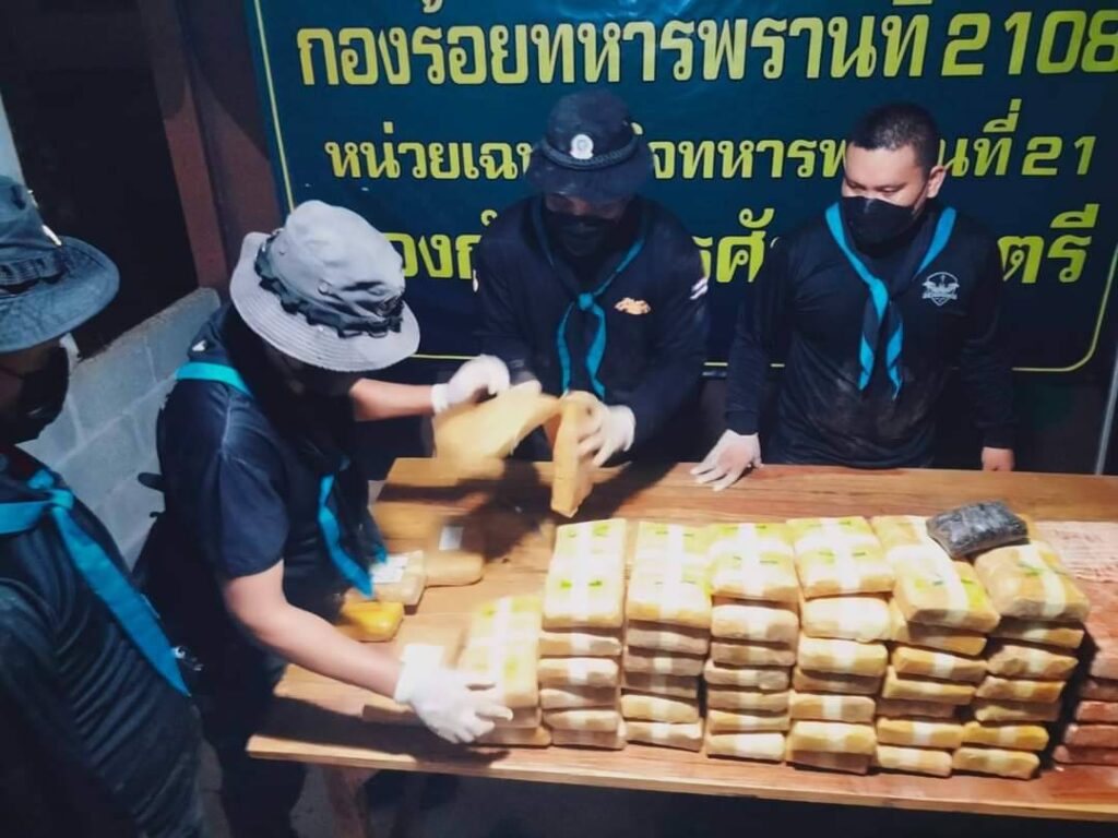 วันที่ 12 มิถุนายน 2565 ผู้สื่อข่าวรายงานว่า กองกำลังสุรศักดิ์มนตรี โดย หน่วยเฉพาะกิจกรมทหารพรานที่ 21 ภายใต้การอำนวยการของ พล.ต.ณรงค์ สวนแก้ว ผบ.พล.ร.3/ผบ.กกล.สุรศักดิ์มนตรี, พ.อ.สุคนธรัตน์ ชาวพงษ์ ผบ.บก.ควบคุมที่ 1 ( ร.3 ) และ พ.อ.อุทัย นิลเนตร ผบ.กรม ทพ.21/ผบ.ฉก.ทพ.21 จากการบูรณาการด้านการข่าวในพื้นที่ อ.บ้านแพง จ.นครพนม ได้รับแจ้งจากแหล่งข่าวว่าจะมีการลำเลียงยาเสพติดเข้ามาในพื้นที่ในพื้นที่ จึงได้สั่งการให้กองร้อยทหารพรานที่ 2108 หน่วยเฉพาะกิจกรมทหารพรานที่ 21 นำทีมโดย ร.ท.วันชาติ เหมือนปืน ผบ.ร้อย.ทพ.2108 (หน่วยงานหลัก) บูรณาการกำลัง 3 ฝ่ายทำการลาดตระเวนซุ่มเฝ้าตรวจครั้นเมื่อเวลา20.50 น.ตรวจพบราษฎรชายประมาณ 5 คน ไม่ทราบสัญชาติ เดินแบกสิ่งของมาตามป่าตามทุ่งนาบริเวณบ.แพงใต้ ม.11 ต.บ้านแพง อ.บ้านแพง จ.นครพนม มุ่งหน้ามายังถนนหลวงหมายเลข 212 หน่วยจึงแสดงตัวขอตรวจค้น แต่กลุ่มบุคคลดังกล่าวได้ทิ้งกระสอบที่แบกมา และอาศัยความชำนาญในพื้นที่วิ่งหลบหนี จากการตรวจสอบบริเวณพื้นโดยรอบรอบตรวจพบของกลาง ยาบ้า 2 กระสอบ และกัญชาจำนวน 2 กระสอบ ขั้นต้นของกลางทั้งหมดจะนำมาตรวจนับที่ บก.ร้อย.ทพ.2108 เพื่อแจ้งหน่วยงานความมั่นคงร่วมตรวจนับ พบเป็นยาบ้า จำนวน 286,600 เม็ด และกัญชา จำนวน 30 กก. หน่วยจึงยึดของกลางทั้งหมดเตรียมส่งมอบให้ ส่งพนักงานสอบสวน สภ.บ้านแพงเพื่อดำเนินการตามกฎหมายต่อไป