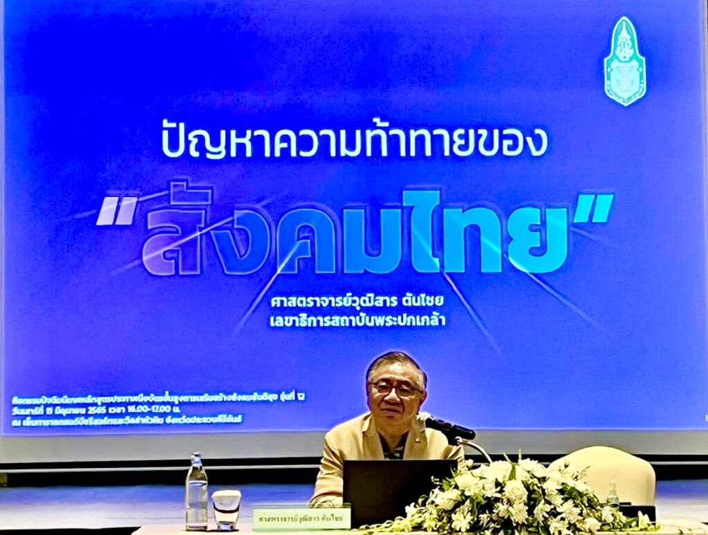 วันที่ 12 มิถุนายน 2565 ที่หัองประชุม โรงแรมเซ็นทาราแกรนด์บีซรีสอร์ท หัวหิน : ศาสตราจารย์วุฒิสาร ตันไชย เลขาธิการ สถาบันพระปกเกล้า เป็นประธานปิดการปัจฉิมนิเทศนักศึกษาหลักสูตรประกาศนียบัตรชั้นสูงการเสริมสร้างสังคมสันติสุข (สสสส.) รุ่นที่ 12 โดยบรรยายพิเศษตอนหนึ่งถึงความคาดหวังให้นักศึกษาซึบซับความเป็นสถาบันพระปกเกล้าที่เรียกว่า KPI DNA ด้วยความผูกพันและตระหนักรู้ เป็นตัวอย่างที่ดี เป็นเมล็ดพันธุ์ เป็นพลังสมองที่ทรงคุณค่า คิดถึงประโยชน์ส่วนรวม คิดถึงคนอื่นเสมอ