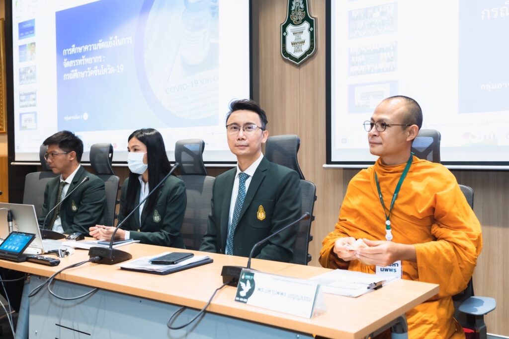 กลุ่ม 1 นำเสนอประเด็น “การศึกษาความขัดแย้งของการจัดสรรทรัพยากร : กรณีศึกษาวัคซีนโควิด-19” กลุ่ม 2 นำเสนอประเด็น “ถอดบทเรียน เครื่องมืออันทรงพลัง “โมเดล 11 ขั้นตอน ในการเสริมสร้างสังคมสันติสุข”
