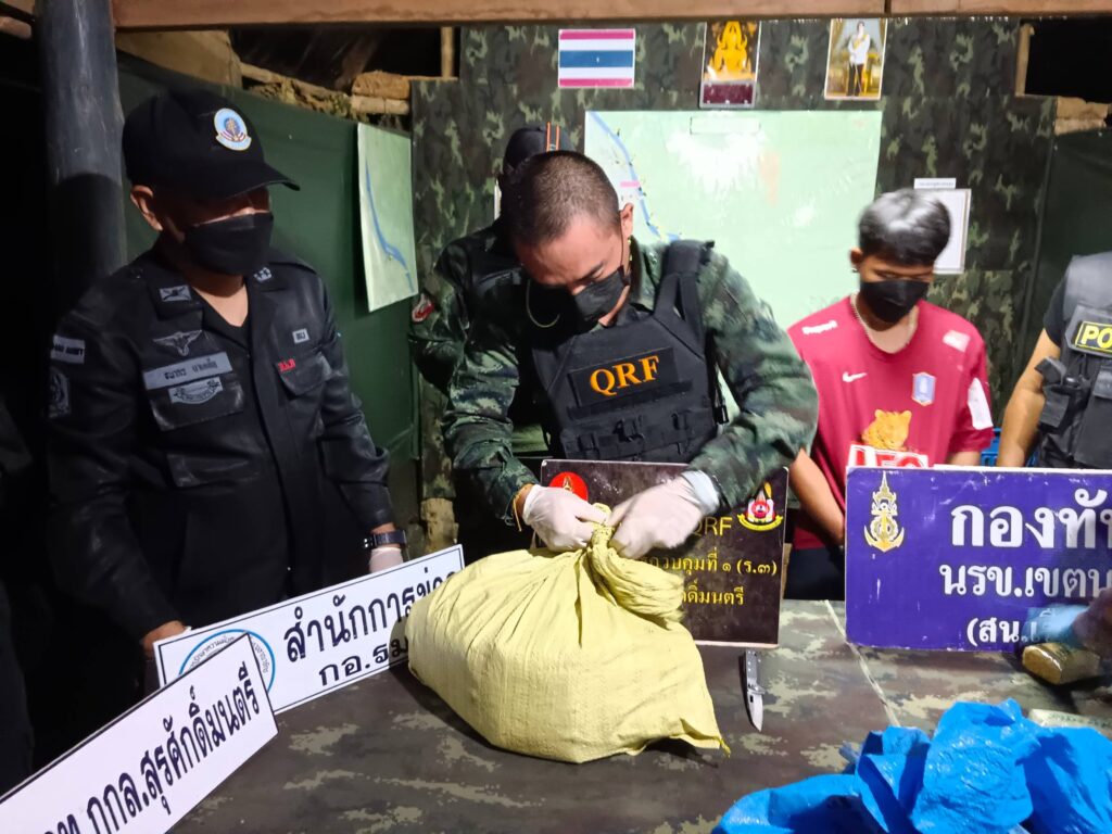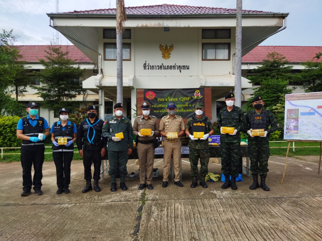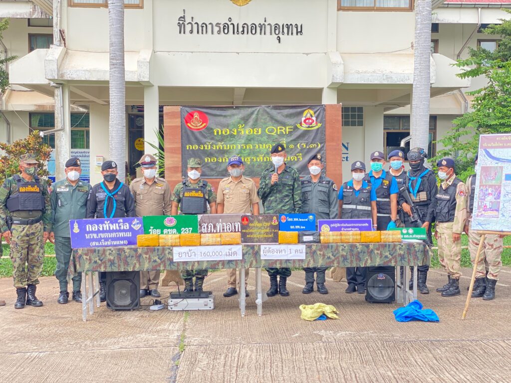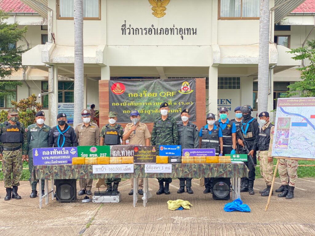 เมื่อวันที่ 11 เดือน มิถุนายน พ.ศ.2565 เวลา 20.30 น. ภายใต้การอำนวยการของ พล.ต.ณรงค์ สวนแก้ว ผบ.กกล.สุรศักดิ์มนตรี ,พ.อ.สุคนธรัตน์ ชาวพงษ์ ผบ.บก.ควบคุมที่ 1 (ร.3) กกล.สุรศักดิ์มนตรี, พ.อ.ปราโมทย์ เนียมสำเภา รอง.ผบ.บก.ควบคุมที่ 1 (ร.3) กกล.สุรศักดิ์มนตรี พ.ท.ศรณณัฐ นวลมณี รอง.ผบ.บก.ควบคุมที่ 1 (ร.3) กกล.สุรศักดิ์มนตรี ,พ.อ.อุทัย นิลเนตร ผบ.ฉก.ทพ.21 ,พล.ต.วณัฐ ลักษณะศิริ ผบ.ขกท.ตข.3 ขกท.กกล.สุรศักดิ์มนตรี ,พ.ท.ภาณุ ไตรละนันนท์ ผบ.ขกท.กกล.สุรศักดิ์มนตรี,พ.ต.ท. เฉลิมชัย ศรีทอง ผบ.ร้อย ตชด. 237,น.ท.ธนะพงษ์ สุดรักษ์ หน.สน.เรือบ้านแพง ,พ.ต.อ.จีรภัทร พฤฑฒิกุล ผกก.3 บก.ปส.2 ,พ.ต.ท.พล หอมจันทร์ รอง ผกก.3 บก.ปส.2 ,นายปรีชา สอิ้งทอง นายอำเภอท่าอุเทน ,พ.ต.อ.แสวง คนคล่อง ผกก.สภ.ท่าอุเทน ได้รับแจ้งจากแหล่งข่าวภาคประชาชน ของอำเภอท่าอุเทน ว่าจะมีการลำเลียงยาเสพติด ข้ามมาจากฝั่ง สปป.ลาว เข้ามายังฝั่งไทย ในพื้นที่ บ.เหล่าสวนกล้วย ม.4 ต.หนองเทา อ.ท่าอุเทน จ.นครพนม จึงได้สั่งการให้ ร.อ.นฤดล อุตม์สีขันธ์ ผบ.ร้อย.QRF วางแผนการปฏิบัติ และ บูรณาการการร่วมกับ ขกท.กกล.สุรศักดิ์มนตรี, กองร้อย ตชด. 237, สน.เรือบ้านแพง ,กก.3 บก.ปส.2 บช.ปส. ,กองร้อยทหารพรานที่ 2109 , จนท.ตร.สภ.ท่าอุเทน, ฝ่ายปกครอง อ.ท่าอุเทน จัดกำลังพล ลาดตระเวนตรวจพื้นที่/จุดล่อแหลม บริเวณริมฝั่งแม่น้ำโขง ต.หนองเทา อ.ท่าอุเทน จ.นครพนม โดยแบ่งกำลังออกเป็น 2 ชุด ซุ่มดูเหตุการณ์ริมฝั่งแม่น้ำโขง ครั้นต่อมาเวลาประมาณ 20.30 น. ชุดปฏิบัติการที่ 1 นำโดย จ.ส.อ.ณรงค์ฤทธิ์ อุปศรี ซึ่งซุ่มเฝ้าตรวจบริเวณ บ.เหล่าสวนกล้วย ม.4 ต.หนองเทา อ.ท่าอุเทน จ.นครพนม ได้สังเกตเห็นมีเรือกีบหางยาวติดเครื่องยนต์ จํานวน 1 ลํา พบเห็นบุคคลในเรือ จำนวน 2 คน แล่นมาจาก ฝั่งประเทศเพื่อนบ้าน เข้ามายังบริเวณริมฝั่งแม่น้ำโขง บ.เหล่าสวนกล้วย ม.4 ต.หนองเทา อ.ท่าอุเทน จ.นครพนม เมื่อถึงบริเวณริมฝั่งแม่น้ำโขงชายในเรือแบกกระสอบต้องสงสัย จำนวน 2 กระสอบ มาวางไว้ในพุ่มหญ้าริมฝั่งโขง จนท. จึงได้เดินเข้าใกล้บริเวณที่กระสอบต้องสงสัยถูกวางไว้ หลังจากนั้นชายต้องสงสัยทั้ง 2 คน ได้ขับเรือกลับไปยังฝั่ง สปป.ลาว ในเวลาต่อมาหลังจากนั้นประมาณ 10 นาที ได้มี นาย ตั้ม ( นามสมมุติ ) เดินเข้ามายังบริเวณที่กระสอบต้องสงสัยวางอยู่เพื่อที่จะลำเลียงกระสอบต้องสงสัย จนท. จึงได้แสดงตัวเพื่อขอทำการตรวจค้นกระสอบต้องสงสัยดังกล่าว จากการตรวจค้น ตรวจพบว่ามี จำนวน 2 กระสอบ โดยแบ่งเป็นกระสอบสีน้ำเงิน 1 กระสอบ และกระสอบสีเหลือง 1 กระสอบ ภายในกระสอบทั้ง 2 กระสอบ บรรจุยาเสพติดให้โทษประเภท 1 (ยาบ้า) ภายนอกก้อนยาเสพติดจะมี ตัวอักษรภาษาลาวเขียนกำกับบอกสถานที่ปล