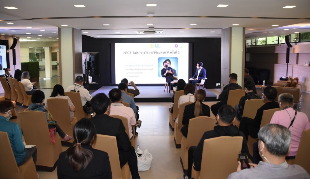 สำหรับกิจกรรม “NRCT Talk : นักวิจัยดีเด่นแห่งชาติ ประจำปี 2565” ในครั้งนี้ จัดขึ้นเพื่อเป็นเวทีให้นักวิจัยได้นำเสนอผลงานวิจัยและนวัตกรรมผ่านสื่อมวลชน ตลอดจนการผลิตและเผยแพร่ประชาสัมพันธ์ผลงานวิจัย ผลงานประดิษฐ์คิดค้น กิจกรรม ภารกิจ และผลการดำเนินงาน ของ (วช.) เพื่อให้สื่อมวลชนเป็นสื่อกลางในการประชาสัมพันธ์และเผยแพร่ผลงานและกิจกรรมของ (วช.) ไปสู่ชุมชนและสาธารณชนเพื่อให้ได้ทราบและนำไปสู่การใช้ประโยชน์ต่อไป