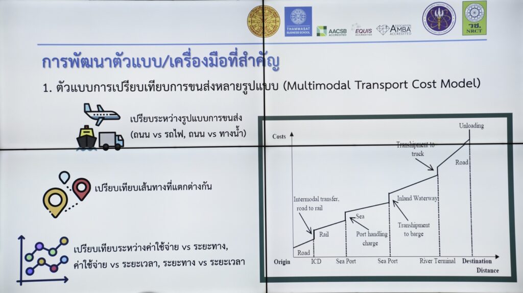 โลจิสติกส์ในประเทศไทยและในภูมิภาค เรื่องนี้ถือเป็นประโยชน์ต่อผู้ประกอบการ ผู้ประกอบการจะได้มีข้อมูลอ้างอิงและประเมินความสามารถในการแข่งขัน และส่วนที่ 3 เรื่องการพัฒนาเครื่องมือเรื่องระบบที่มาสนับสนุนในเรื่องโลจิสติกส์อุทกภัยที่มาช่วยเหลือบุคคลที่อยู่ในสภาวะที่อันตราย ซึ่งเป็นศาสตร์ที่ใหม่ ที่ไม่มีใครมองในรูปแบบโลจิสติกส์ แต่พอมองในรูปแบบโลจิสติกส์จะเห็นว่ามีประโยชน์อย่างชัดเจน เพราะผลคือการช่วยเหลือชีวิตคน