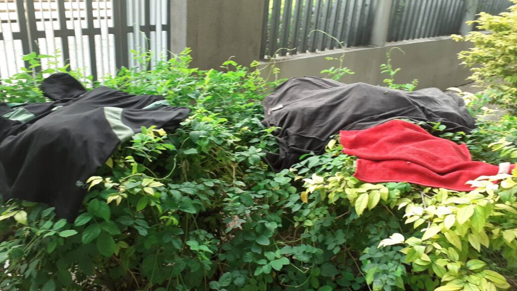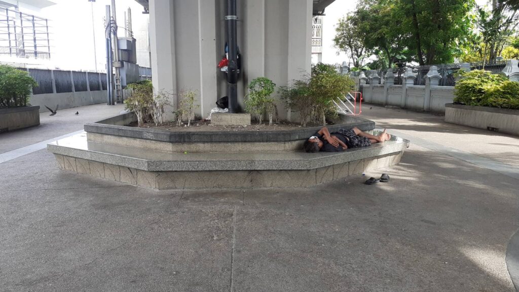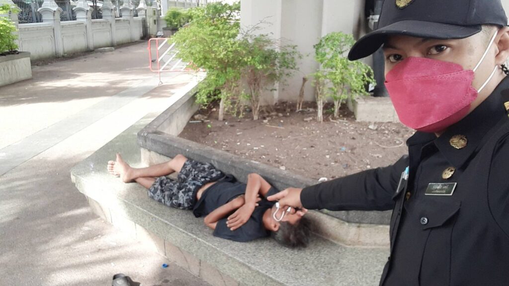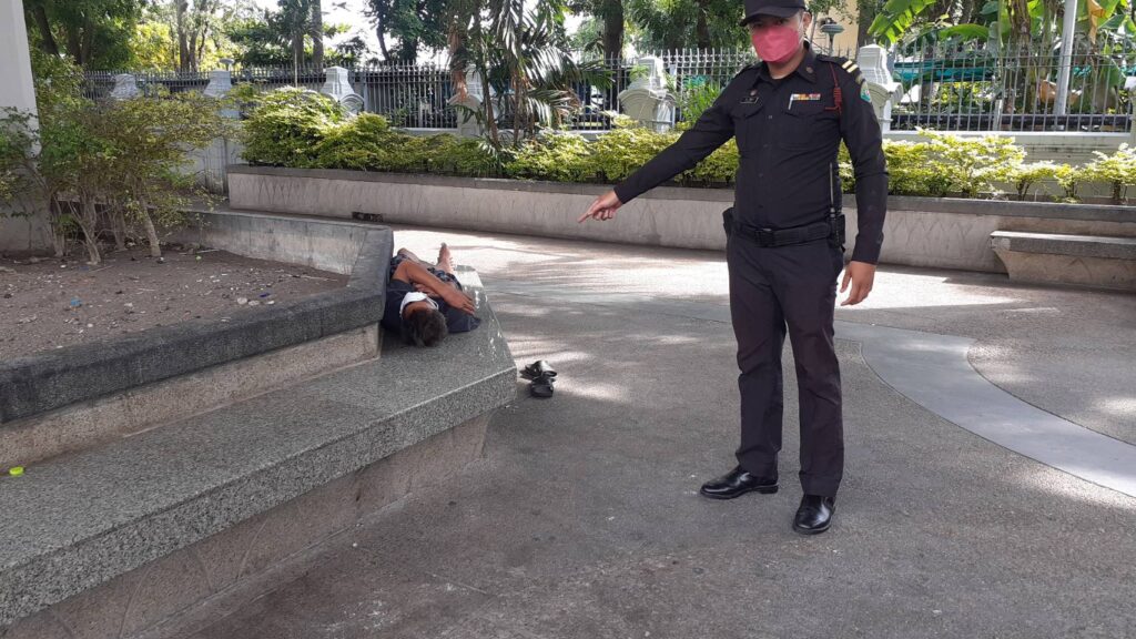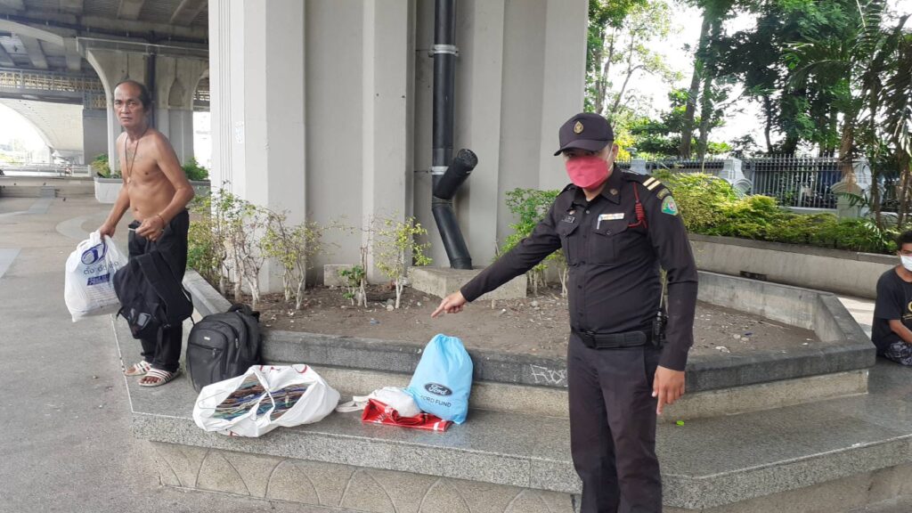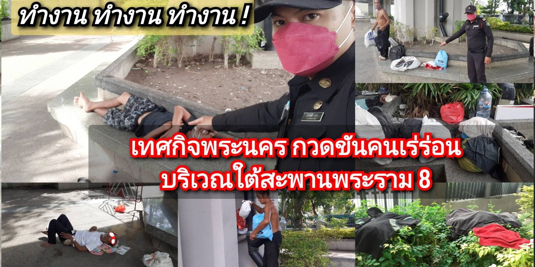 ทั้งนี้จากการตรวจสอบ พบ ชายไทย (ไม่ทราบชื่อ) คนเร่ร่อน 4 ราย ลักลอบแอบหลับนอนใต้สะพาน ตามมุมต่างๆ จากนั้น จนท.เทศกิจ ได้ทำการเรียกปลุก และ ได้ว่ากล่าวตักเตือนทั้ง 4 ราย และ ให้ทำการเก็บขยะ สัมภาระ ออก ก่อนผลักดันต่อไป เบื้องต้นเหตุการณ์ทั่วไปเช้านี้เป็นไปด้วยความเรียบร้อย..