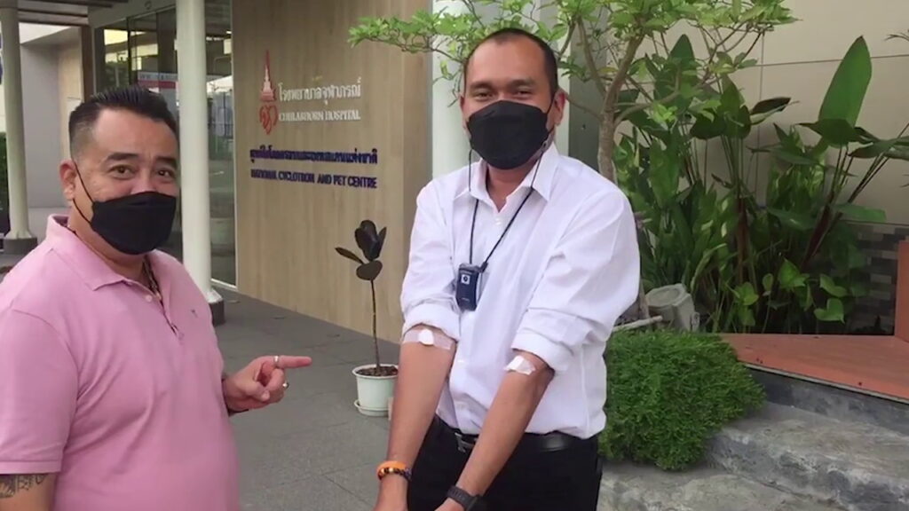 ร้อยตำรวจเอก ดร.ตรีลุพธ์ ธูปกระจ่าง (นายกโบว์ลิ่ง) นายกเทศมนตรีนครรังสิต กล่าวว่า จากเมื่อวันพฤหัสบดีที่ 9 มิถุนายน 2565 เวลา 15.00 น. ผมมีอาการวูบและตัวสั่นมือสั่นจนมีสีเขียว ตัวเย็น เหนื่อยหอบ ภายในห้องทำงานโดยไม่ทราบสาเหตุ หลังจากที่ได้ดื่มน้ำเข้าไป เพื่อนร่วมงานเห็นจึงเข้าช่วยเหลือและเรียกหน่วยแพทย์ฉุกเฉินที่เข้าเวรอยู่ช่วยดูอาการเบื้องต้นวัดความดันพบว่าสูงถึง 180 กว่าหน่วยแพทย์ช่วยเบื้องแล้วจึงได้นำส่งโรงพยาบาลเปาโล รังสิต แอดมิทจำนวน 2 วัน โดยมีการเอกซเรย์สมองและหัวใจก็ปกติดี ต่อมาได้ทำ MRI ที่โรงพยาบาลเกษมราษฎร์ ก็ปกติ แต่อาการของผมก็ยังไม่ปกติ มีอาการรู้สึกวูบ ๆ และมือสั่นในบางครั้ง ผมจึงได้นำผลตรวจมาปรึกษาแพทย์ที่โรงพยาบาลจุฬาภรณ์โดยคุณหมอได้มีการทำเพทเอ็มอาร์ไอ มีการฉีดสีเข้าเส้นเลือดในร่างกาย เพื่อการตรวจสมองว่ามีการผิดปกติอย่างไร ซึ้งต้องรอผลให้แพทย์วิเคราะห์อีกครั้ง