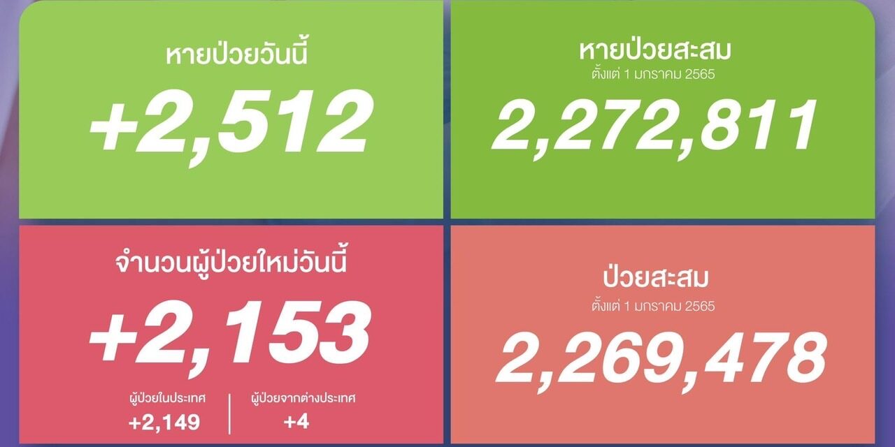 หายป่วยสะสม 2,272,811 ราย (ตั้งแต่ 1 มกราคม 2565)