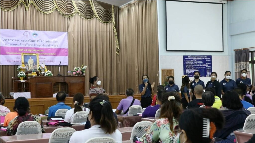(วันที่ 15 มิถุนายน 2565)สำนักงานพัฒนาสังคมและความมั่นคงของมนุษย์จังหวัดสิงห์บุรี ได้จัดโครงการอบรมส่งเสริมพัฒนาศักยภาพองค์กรด้านคนพิการจังหวัดสิงห์บุรี ประจำปีงบประมาณ 2565 เพื่อเป็นการสร้างการมีส่วนร่วมในการกำหนดแนวทางในการพัฒนาศักยภาพองค์กรคนพิการและพัฒนาสมาชิกคนพิการในองค์กรต่างๆ ขึ้นที่ห้องประชุมโรงเรียนวัดสังฆราชาวาส อำเภอเมือง จังหวัดสิงห์บุรี โดยมีตัวแทนผู้พิการจากองค์กรต่างๆ เช่นสมาคมคนตาบอด ชมรมผู้ปกครองคนพิการออทิสติก ชมรมคนหูหนวก ฯลฯ จำนวนกว่า 70 คน เข้าร่วมโครงการ