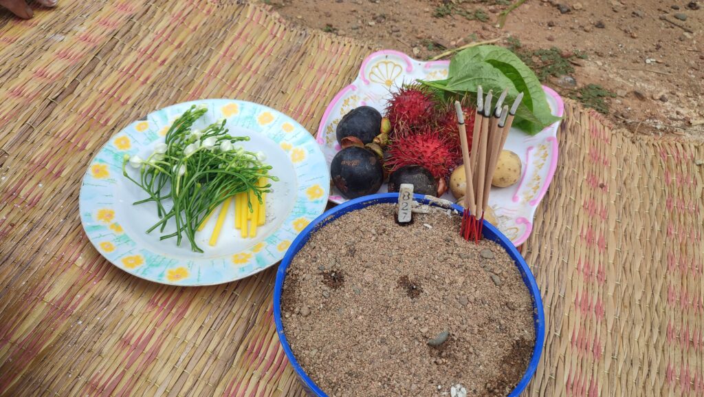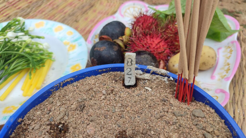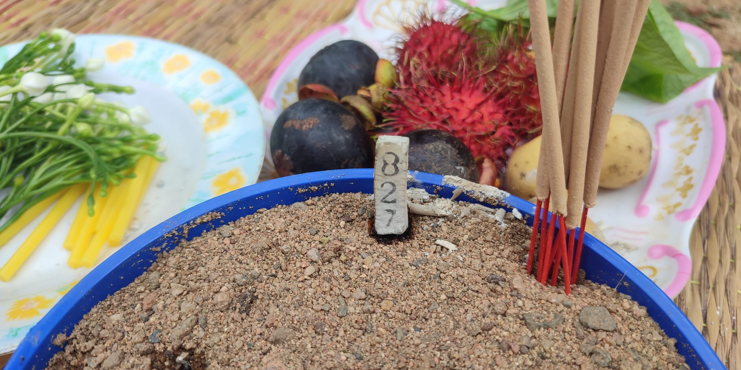 จึงเดินทางไปที่บ้านหลังดังกล่าว พบชาวบ้านจำนวนหนึ่ง กำลังจัดเตรียมดอกไม้ ธูปเทียน เครื่องเซ่นไหว้ นั่งประกอบพิธีขอหวย กลางที่โล่งแจ้ง เมื่อเสร็จพิธี ก็ได้นำแป้งฝุ่นโรยจนทั่วกระดองเต่า พร้อมใช้มือลูบเบาๆ ก่อนส่องหาตัวเลข บางคนก็ใช้โทรศัพท์มือถือถ่าย ก่อนได้เลขเด็ด 953 827 62 เตรียมนำไปเสี่ยงโชคเสี่ยงดวง ในช่วงโค้งสุดท้ายก่อนหวยออก
