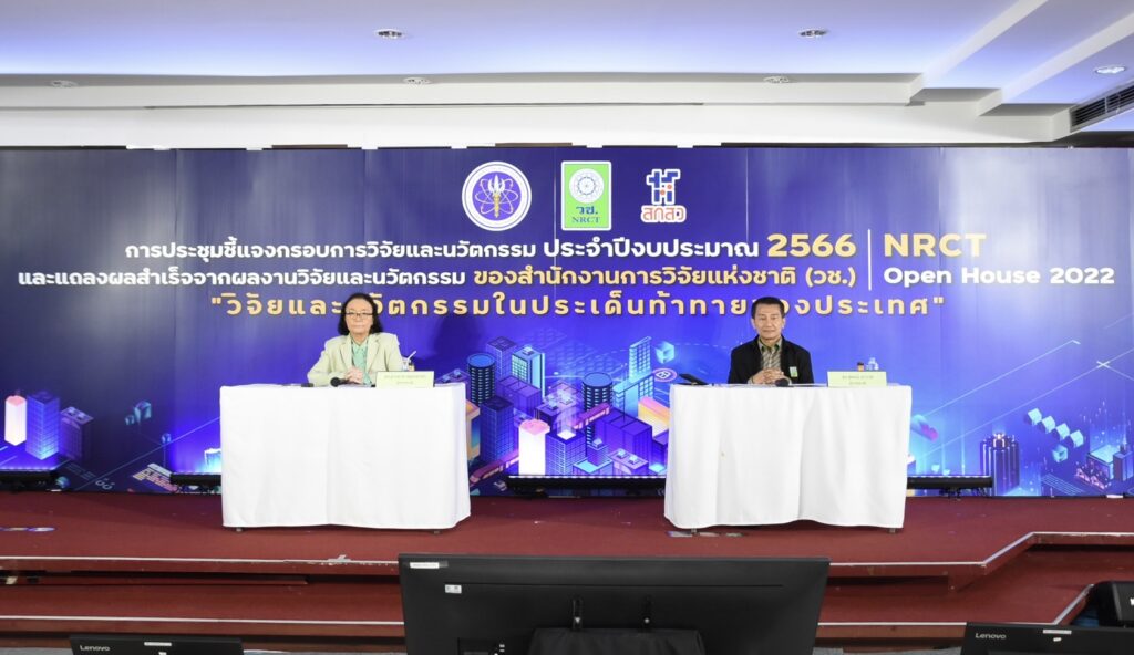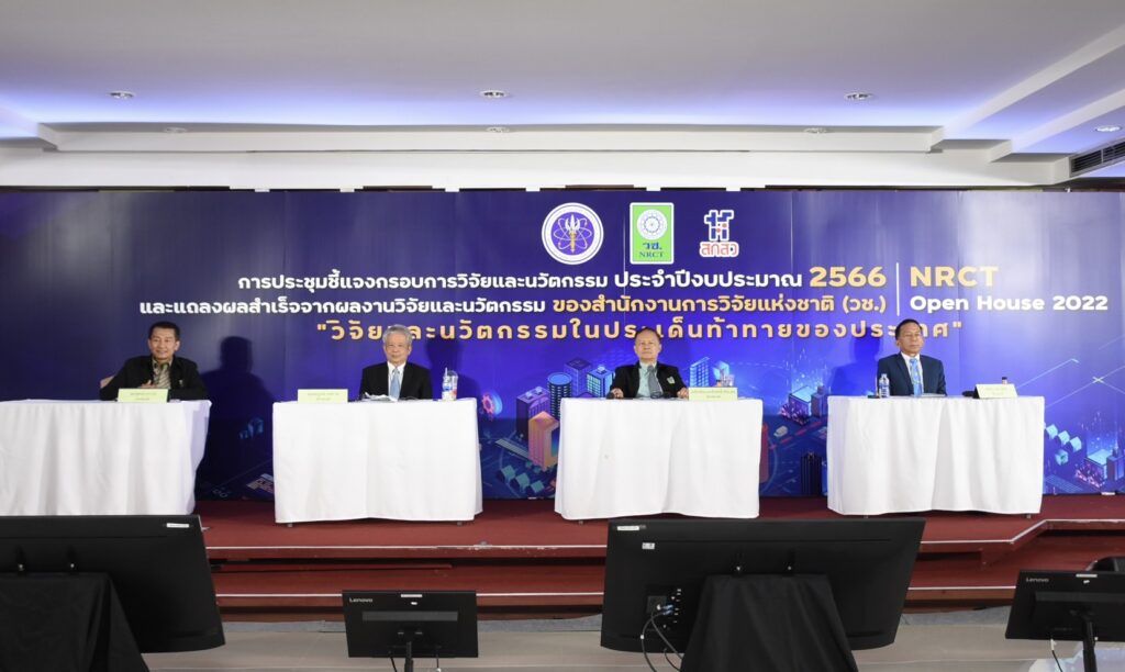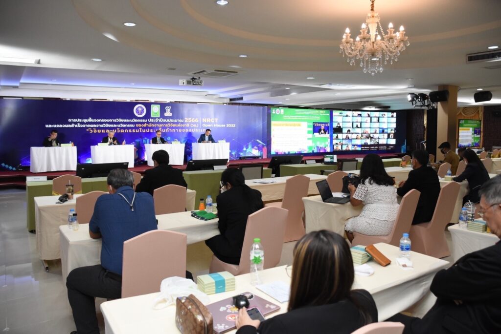 (วช.) เปิดบ้านชี้แจงกรอบการวิจัยและนวัตกรรม ประจำปี 2566 พร้อมแถลงผลสำเร็จจากการวิจัยและนวัตกรรม NRCT Open House 2022 “วิจัยและนวัตกรรมในประเด็นท้าทายของประเทศ” เพื่อประชาสัมพันธ์เกี่ยวกับการรับข้อเสนอการวิจัยและนวัตกรรม รวมถึงชี้แจงกรอบการวิจัยและนวัตกรรมที่ (วช.) ให้การสนับสนุนทุนในปี 2566 ระหว่างวันที่ 12–19 มิถุนายน 2565 ณ ห้องประชุมจอมพลสฤษดิ์ ธนะรัชต์ ชั้น 2 อาคาร วช.1 สำนักงานการวิจัยแห่งชาติ (วช.) และออนไลน์ผ่านระบบ Zoom รวมทั้งการถ่ายทอดสด (Live Steaming) ผ่าน Facebook ของสำนักงานการวิจัยแห่งชาติ (วช.)