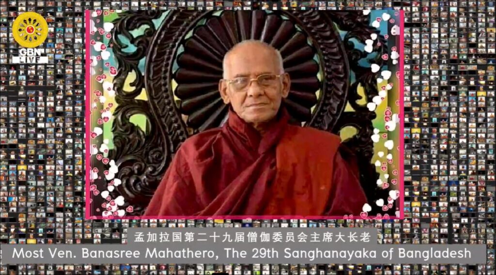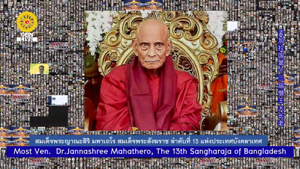 วันที่ 16 มิถุนายน 2565 พระครูสมุห์สนิทวงศ์ วุฑฺฒิวํโส ผู้อำนวยการสำนักสื่อสารองค์กร ตำบลคลองสาม อำเภอคลองหลวง วัดพระธรรมกาย จังหวัดปทุมธานี กล่าวว่า วัดพระธรรมกายได้อาราธนาคณะสงฆ์ทั่วโลกเจริญพระพุทธมนต์ออนไลน์ผ่าน ZOOM ตั้งแต่เมื่อวันอังคารที่ 14 มิถุนายน พ.ศ. 2565 ที่ผ่านมา โดยได้รับความเมตตาจากพระมหาเถรานุเถระเข้าร่วมพิธี อาทิ สมเด็จพระญาณสิริมหาเถโร สมเด็จพระสังฆราชองค์ที่ 13 แห่งบังกลาเทศ, สมเด็จวะนะสิริมหาเถโร สังฆนายก องค์ที่ 29 แห่งบังกลาเทศ, พระธัมมปิยะ มหาเถโร เลขาธิการสหพันธ์พุทธนานาชาติ ประเทศอินเดีย, พระสังฆเสนา มหาเถระ ประธานศูนย์สมาธินานาชาติมหาโพธิ ลาดัก ประเทศ อินเดีย, พระเดชพระคุณหลวงพ่อธรรมะโสภณะ ประธานมหาเถระสมาคมเนปาล เป็นต้น
