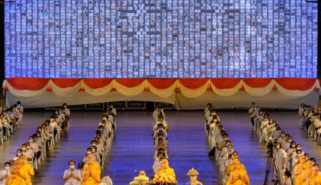 วัดพระธรรมกาย จังหวัดปทุมธานี ได้จัดโครงการคณะสงฆ์ทั่วโลกเจริญพระพุทธมนต์ผ่าน ZOOM 1 ล้านรูป เริ่มครั้งแรกเมื่อวันที่ 22 เม.ย. 2564 ซึ่งมีคณะสงฆ์จากทั่วโลกร่วมพิธีเจริญพระพุทธมนต์ นั่งสมาธิ แผ่เมตตา อธิษฐานจิตให้ประชาชนทั่วทั้งโลกมีความร่มเย็นเป็นสุข ปราศจากทุกข์โศกโรคภัย รอดพ้นและปลอดภัยจากโรคโควิด-19 โดยในวันที่ 13 ก.ค. 2565 ที่จะถึงนี้ ตรงกับวันอาสาฬหบูชาได้นิมนต์คณะสงฆ์จากทั่วโลก จำนวน 10,000 รูป เจริญพระพุทธมนต์ออนไลน์ และจุดประทีปถวายเป็นพุทธบูชา