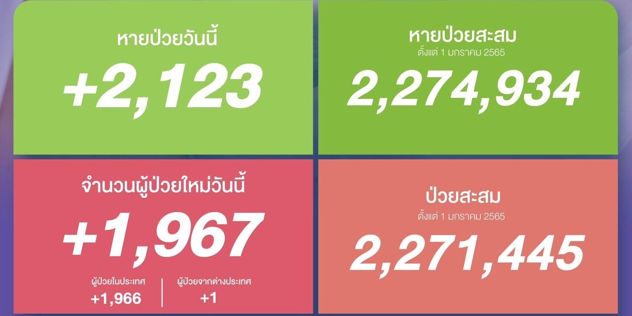 หายป่วยสะสม 2,274,934 ราย (ตั้งแต่ 1 มกราคม 2565)