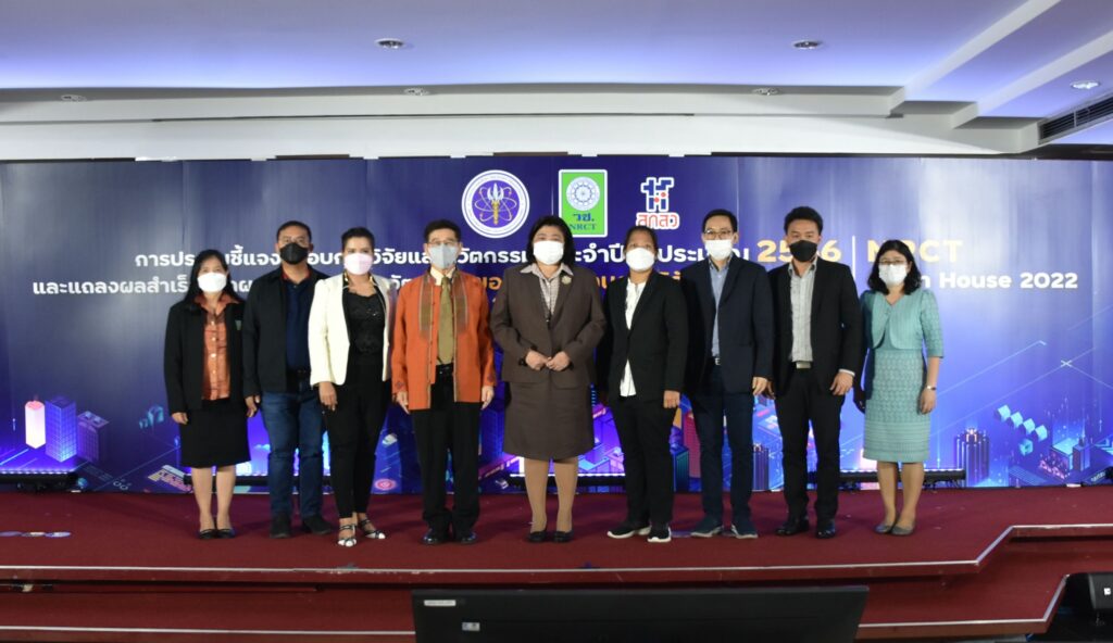 วันที่ 16 มิถุนายน 2565 : สำนักงานการวิจัยแห่งชาติ (วช.) กระทรวงการอุดมศึกษา วิทยาศาสตร์ วิจัยและนวัตกรรม (อว.) จัดการประชุมชี้แจงกรอบการวิจัยและนวัตกรรมด้านการพัฒนาเทคโนโลยีและอุตสาหกรรม ประจำปีงบประมาณ 2566 และการแถลงผลสำเร็จจากผลงานวิจัยและนวัตกรรมด้านการจัดการความรู้การวิจัยและถ่ายทอดเพื่อการใช้ประโยชน์ NRCT Open House 2022 “วิจัยและนวัตกรรมในประเด็นท้าทายของประเทศ” เพื่อชี้แจงกรอบการวิจัยและนวัตกรรม ประจำปีงบประมาณ 2566 ของ (วช.) และแนวทางการเขียนและพิจารณาข้อเสนอการวิจัยและนวัตกรรม รวมทั้งแถลงผลสำเร็จจากการวิจัยและนวัตกรรม เพื่อเป็นเวทีแลกเปลี่ยนประสบการณ์การเขียนข้อเสนอการวิจัยและนวัตกรรมและการยื่นขอทุน (วช.) ด้านการพัฒนาเทคโนโลยีและอุตสาหกรรม โดย ดร.วิภารัตน์ ดีอ่อง ผู้อำนวยการสำนักงานการวิจัยแห่งชาติ (วช.) เป็นประธานเปิดการประชุมฯ