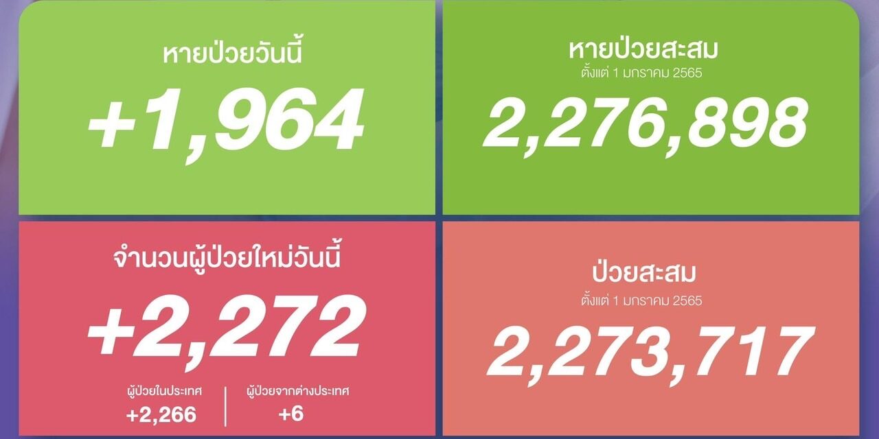 หายป่วยสะสม 2,276,898 ราย (ตั้งแต่ 1 มกราคม 2565)