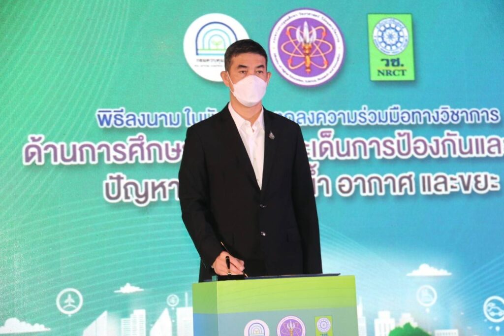 วันที่ 18 มิถุนายน 2565 เวลา 09.00 น.ณ ห้องประชุม Lotus 5–7 โรงแรมเซ็นทารา แกรนด์ และบางกอกคอนเวนชั่นเซ็นเตอร์ เซ็นทรัลเวิลด์ แรกราชประสงค์ : สำนักงานการวิจัยแห่งชาติ (วช.) กระทรวงการอุดมศึกษา วิทยาศาสตร์ วิจัยและนวัตกรรม (อว.) ร่วมกับ กรมควบคุมมลพิษ (คพ.) จัดพิธีลงนามในบันทึกข้อตกลงความร่วมมือทางวิชาการด้านการศึกษาวิจัยในประเด็นการป้องกันและแก้ไขปัญหามลพิษทางน้ำ อากาศและขยะ ซึ่งจัดขึ้น ณ ห้องประชุม Lotus 5–7 โรงแรมเซ็นทารา แกรนด์ และบางกอกคอนเวนชั่นเซ็นเตอร์ เซ็นทรัลเวิลด์ เมื่อวันที่ 18 มิถุนายน 2565