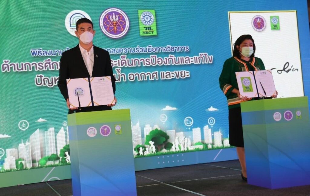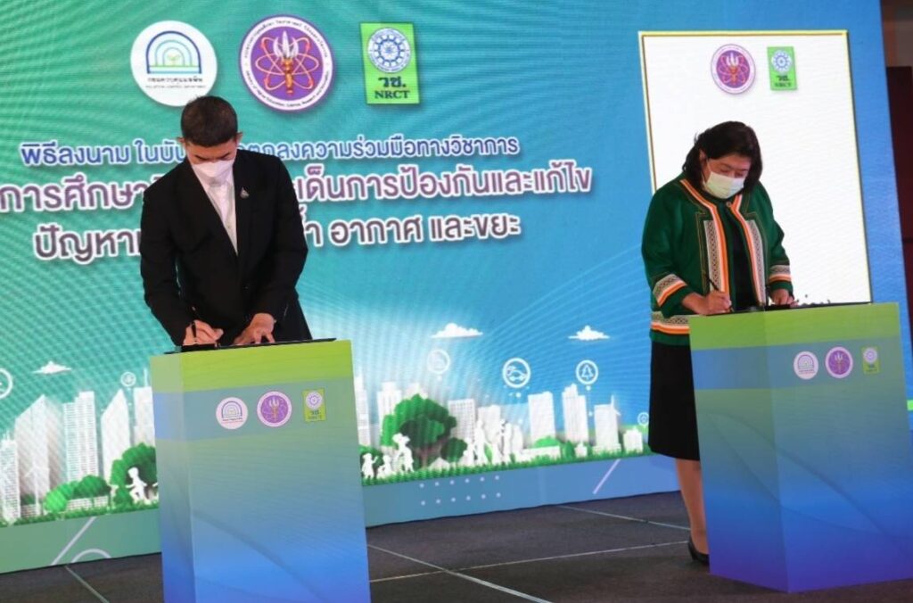 (วช.) และ (คพ.) มีความร่วมมือกันในการผลักดันการใช้ประโยชน์จากการศึกษาวิจัยเพื่อประกอบการจัดทำข้อเสนอแนะเชิงนโยบายเพื่อแก้ไขปัญหามลพิษอากาศโดยเฉพาะอย่างยิ่งปัญหา PM2.5 มาอย่างต่อเนื่อง ตั้งแต่ปี 2563 โดย (คพ.) ร่วมกับเครือข่ายนักวิจัยในประเทศไทย จัดทำโครงการวิจัยต่างๆ เพื่อการแก้ไขปัญหา PM2.5 ทั้งในเชิงการบริหารจัดการ ซึ่งได้รับการสนับสนุนงบประมาณในการดำเนินงานจาก (วช.) มาอย่างต่อเนื่อง ในปีนี้จึงเห็นพ้องร่วมกันขยายขอบเขตในบันทึกข้อตกลงความร่วมมือทางวิชาการด้านการศึกษาวิจัยให้ครอบคลุมประเด็นการติดตามป้องกันและแก้ไขปัญหามลพิษทางน้ำ อากาศ และขยะ เพื่อแสดงเจตนารมณ์และความมุ่งมั่นร่วมกันในการสนับสนุนการดำเนินงานแผนงานวิจัยด้านการพัฒนาและเร่งแก้ไขปัญหาสิ่งแวดล้อม โดยมุ่งเน้นการใช้วิทยาศาสตร์ การวิจัย เทคโนโลยี และนวัตกรรม อย่างบูรณาการ เชื่อมโยงผลผลิตเพื่อให้บรรลุเป้าหมายอย่างมีประสิทธิภาพ และประสิทธิผล