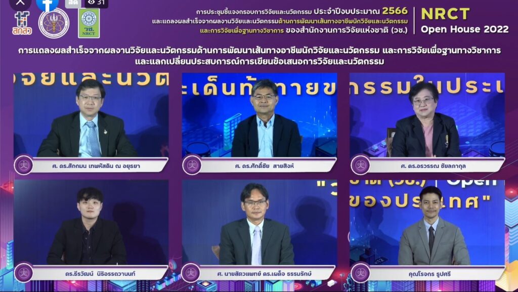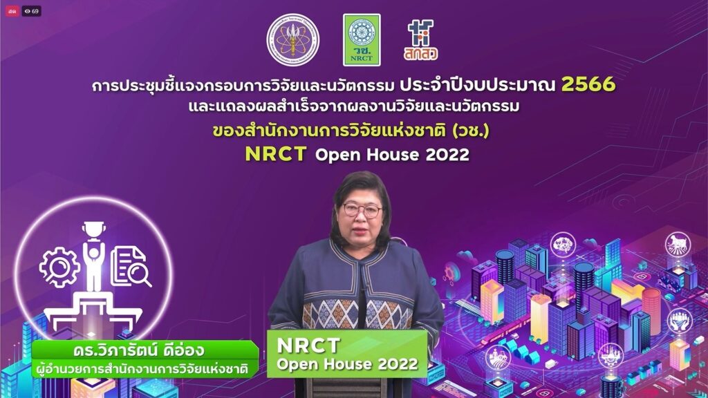 ดร.วิภารัตน์ ดีอ่อง ผู้อำนวยการสำนักงานการวิจัยแห่งชาติ (วช.) กล่าวว่า (วช.) ภายใต้กระทรวงการอุดมศึกษา วิทยาศาสตร์ วิจัยและนวัตกรรม (อว.) ได้จัดการชี้แจงกรอบการวิจัยและนวัตกรรม ปี 2566 และการแถลงผลสำเร็จจากการวิจัยและนวัตกรรม NRCT Open House ระหว่างวันที่ 12–19 มิถุนายน 2565 ซึ่งในวันนี้เป็นวันที่เจ็ด จะเป็นด้านการพัฒนาเส้นทางอาชีพนักวิจัยและนวัตกรรม และการวิจัยเพื่อฐานทางวิชาการ (วช.) เห็นความสำคัญของการพัฒนากำลังคน และสถาบันด้านการวิจัยด้านวิทยาศาตร์ วิจัยและนวัตกรรม
