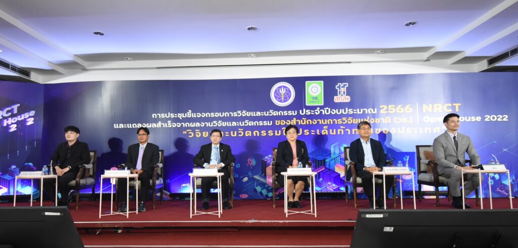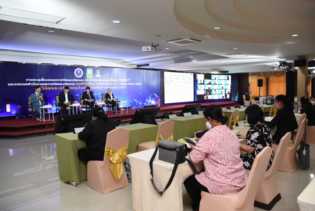 และนวัตกรรม NRCT Open House 2022 “วิจัยและนวัตกรรมในประเด็นท้าทายของประเทศ” เพื่อประชาสัมพันธ์เกี่ยวกับการรับข้อเสนอการวิจัยและนวัตกรรม รวมถึงชี้แจงกรอบการวิจัยและนวัตกรรมที่ วช. ให้การสนับสนุนทุนในปี 2566 ระหว่างวันที่ 12–19 มิถุนายน 2565 ณ ห้องประชุมจอมพลสฤษดิ์ ธนะรัชต์ สำนักงานการวิจัยแห่งชาติ และออนไลน์ผ่านวีดีทัศน์ทางไกล (VDO Conference) ด้วยระบบ Zoom และการถ่ายทอดสด (Live Steaming) ผ่าน Facebook ของสำนักงานการวิจัยแห่งชาติ