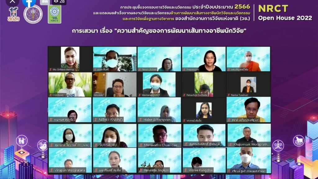 วันที่ 18 มิถุนายน 2565 สำนักงานการวิจัยแห่งชาติ (วช.) กระทรวงการอุดมศึกษา วิทยาศาสตร์ วิจัยและนวัตกรรม จัดการประชุมชี้แจงกรอบการวิจัยและนวัตกรรมด้านการพัฒนาเส้นทางอาชีพนักวิจัยและนวัตกรรม และการวิจัยเพื่อฐานทางวิชาการ ประจำปีงบประมาณ 2566 และการแถลงผลสำเร็จจากผลงานวิจัยและนวัตกรรมด้านการพัฒนาเส้นทางอาชีพนักวิจัยและนวัตกรรม และการวิจัยเพื่อฐานทางวิชาการNRCT Open House 2022 “วิจัยและนวัตกรรมในประเด็นท้าทายของประเทศ” เพื่อชี้แจงกรอบการวิจัยและนวัตกรรม ประจำปีงบประมาณ 2566 ของ (วช.) และแนวทางการเขียนและพิจารณาข้อเสนอการวิจัยและนวัตกรรม รวมทั้งแถลงผลสำเร็จจากการวิจัยและนวัตกรรม เพื่อเป็นเวทีแลกเปลี่ยนประสบการณ์การเขียนข้อเสนอการวิจัยและนวัตกรรมและการยื่นขอทุน วช. ด้านการพัฒนาเส้นทางอาชีพนักวิจัยและนวัตกรรม และการวิจัยเพื่อฐานทางวิชาการ โดย ดร.วิภารัตน์ ดีอ่อง ผู้อำนวยการสำนักงานการวิจัยแห่งชาติ เป็นประธานเปิดการประชุมฯ