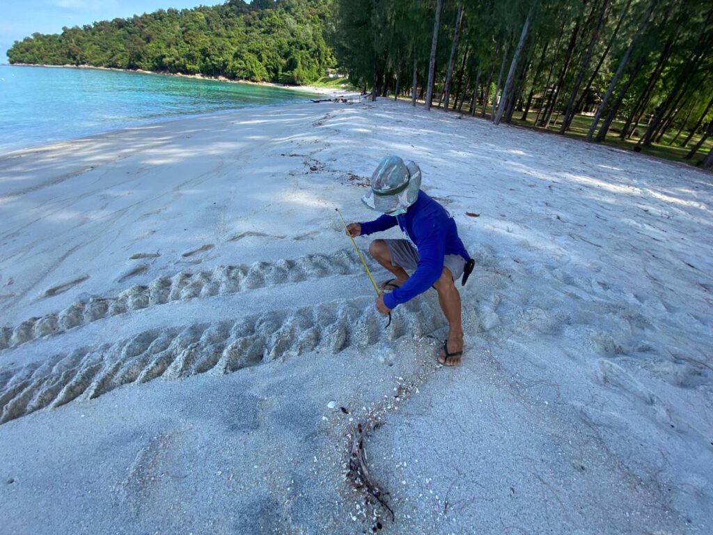 วันนี้19 มิถุนายน 2565 นายมุมีน มาลินี ผู้ช่วยหัวหน้าอุทยานแห่งชาติตะรุเตา เปิดเผยว่า หน่วยพิทักษ์อุทยานแห่งชาติที่ ตต.5(แหลมสน-เกาะอาดัง) พบร่องรอยเต่าขึ้นมาวางไข่ บริเวณชายหาดแหลมสน เกาะอาดัง จึงได้เข้าทำการตรวจสอบ ร่องรอยและวัดขนาดของไข่เต่า พบว่าเป็นเต่าตนุ บริเวณทิศใต้ของเกาะอาดัง ไม่ทราบจำนวนเนื่องจากอยู่พื้นที่ที่เหมาะสมและปลอดภัย จึงไม่ได้ทำการตรวจนับขนย้ายไข่เต่า โดยจะมีเจ้าหน้าที่ดูแลความปลอดภัยของไข่เต่าทะเลอยู่ตลอดเวลาครั้งนี้ เป็นที่ครั้งที่ 3 แล้วที่เต่าขึ้นมาวางไข่ในรอบปีนี้