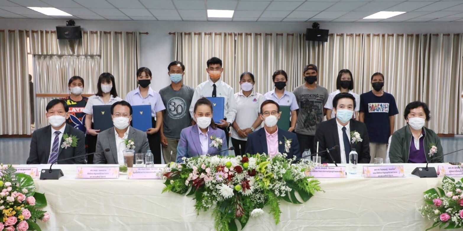 พร้อมร่วมพิธีลงนามสัญญารับทุนนักศึกษาโครงการครูรัก (ษ์) ถิ่น รุ่นที่ 3 ปีการศึกษา 2565 ชื่นชม (กสศ.) และมหาวิทยาลัยราชภัฏหมู่บ้านจอมบึง ร่วมกันค้นหาให้โอกาสทางการศึกษา และพัฒนาผู้เรียน