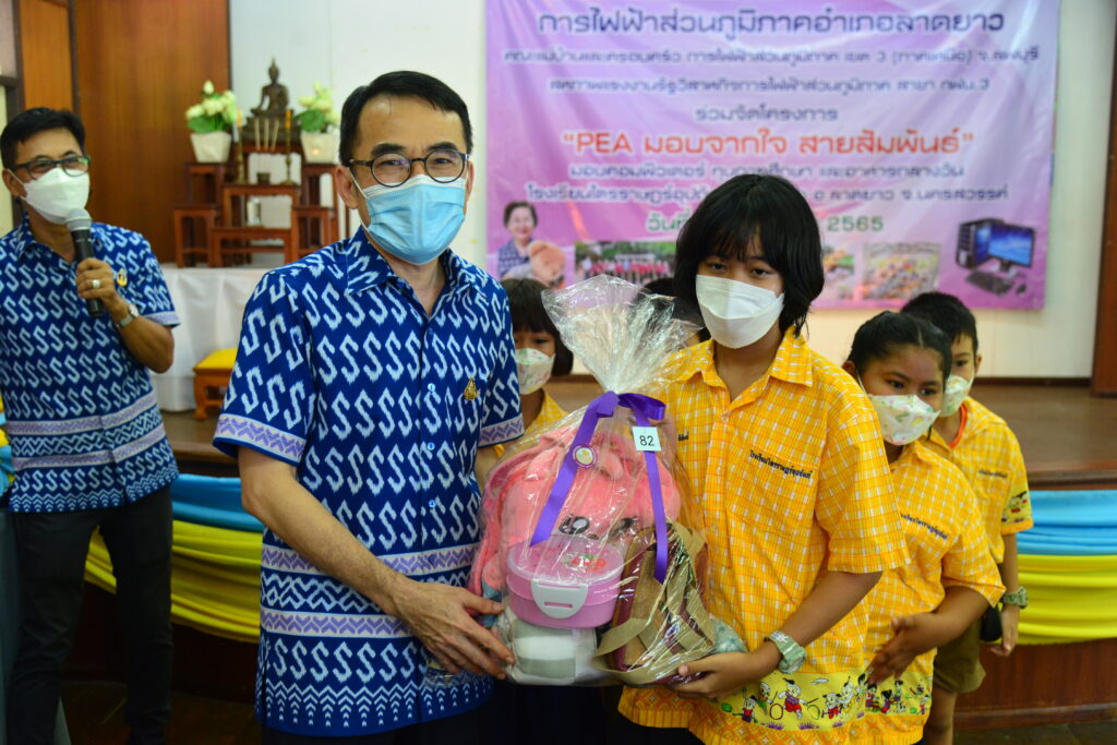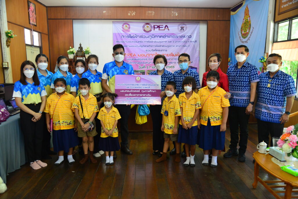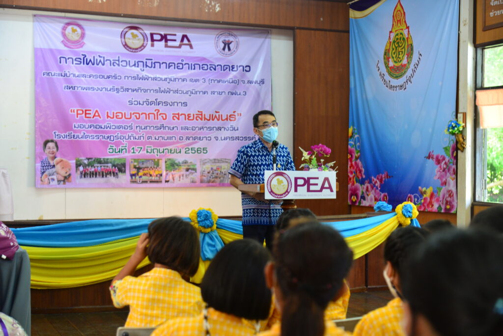 เมื่อวันที่ 17 มิ.ย.65 นายสงกรานต์ ชุติธนธีระกุล ผู้ช่วยผู้ว่าการ การไฟฟ้าส่วนภูมิภาค เขต 3 (ภาคเหนือ) จ.ลพบุรี พร้อมด้วยนางสายปัญญา ชุติธนธีระกุล ประธานคณะแม่บ้านและครอบครัวการไฟฟ้าส่วนภูมิภาค เขต 3 (ภาคเหนือ) จ.ลพบุรี นายธรรมนูญ สุวรรณพฤกษ์ ผอ.ฝ่ายบัญชีและพลังงานไฟฟ้า นายศิริชัย เงินงอก ผจก.กฟภ.จ.นครสวรรค์ นายยุทธนา ร่มจำปา ผจก.กฟภ.อ.ลาดยาวและพนักงาน ร่วมกันจัดกิจกรรม โครงการ “PEA มอบจากใจ สายสัมพันธ์” ด้วยการมอบคอมพิวเตอร์ และอุปกรณ์ประกอบจำนวน 5 เครื่อง อุปกรณ์กีฬา ทุนการศึกษา และเลี้ยงอาหารกลางวัน ให้แก่นักเรียนโรงเรียนไตรราษฎร์อุปถัมภ์ ต.มาบแก อ.ลาดยาว จ.นครสวรรค์ เพื่อส่งเสริมสนับสนุนพัฒนากระบวนการเรียนรู้ ตลอดจนค้นคว้าข้อมูลจากสื่อออนไลน์ของนักเรียน โดยมี นายจีรพงศ์ พิฤกษ์ ผู้อำนวยการ คณะครูและนักเรียน คณะกรรมการสถานศึกษาให้การต้อนรับ นอกจากนี้ น.ส.แก้วตา มะระยงค์ เลขานุการนายกองค์การบริหารส่วนจังหวัดนครสวรรค์ ตัวแทนนายนิโรธ สุนทรเลขา ประธานวิปรัฐบาลและกรรมาธิการตำรวจ ยังร่วมมอบทุนทรัพย์ในกิจกรรมครั้งนี้อีกด้วย ซึ่งบรรยากาศเป็นไปด้วยความสุขของนักเรียนและคณะครู