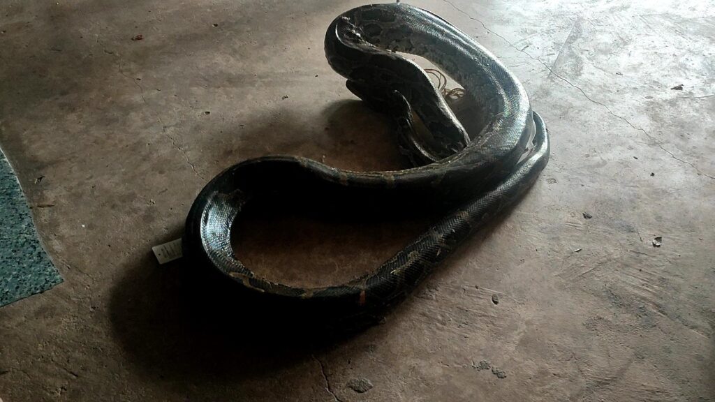 ผู้สื่อข่าวรายงานว่า น.ส.ทรรศนกร โสกบ้านขาม อายุ40ปี เจ้าของบ้าน เลขที่100/2 หมู่7 บ้านวังไทรทอง ต.ซับเปิบ อ.วังโป่ง จ.เพชรบูรณ์ ซึ่งอาศัยอยู่กับลูกสาว วัย 7 ขวบเพียง 2 คน ต่างพากันขวัญกระเจิง เมื่อสองแม่ลูก เปิดประตูไปเจอกับงูเหลือมขนาดใหญ่ ลำตัวยาวกว่า 4 เมตร ได้ขดตัวอยู่ภายในห้องครัว พร้อมแสดงอาการดุร้าย จึงรีบประตูหนี แล้วรีบแจ้งไปยังเจ้าหน้าที่เขตห้ามล่าสัตว์ป่าวังโป่ง-ชนแดน เพื่อขอความช่วยเหลือ เนื่องจากเกรงว่าจะได้รับอันตราย