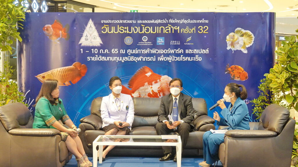 เมื่อเวลา 13.30 น. วันที่ 22 มิถุนายน 2565 ที่ศูนย์การค้าฟิวเจอร์พาร์คและสเปลล์ ตำบลประชาธิปัตย์ อำเภอธัญบุรี จังหวัดปทุมธานี กรมประมง ร่วมกับ คณะแพทยศาสตร์ศิริราชพยาบาล และศูนย์การค้าฟิวเจอร์พาร์ค ตลอดจนภาครัฐและเอกชน ร่วมจัดงานวันประมงน้อมเกล้าฯ ครั้งที่ 32 ระหว่างวันที่ 1 – 10 กรกฎาคม 2565 ตั้งแต่ เวลา 10.00 – 20.00 น. เนรมิตพื้นที่กว่า 7,000 ตรม. ทั่วบริเวณชั้น จี ศูนย์การค้าฟิวเจอร์พาร์คและสเปลล์ ให้เป็นดินแดนของสัตว์น้ำสายมูเตลูตามศาสตร์แห่งความเชื่อและศรัทธา ภายใต้ธีม “Aquatic of Luck” ที่คุณจะได้เติมพลังชีวิตจากสัตว์น้ำกว่า 60 สายพันธุ์ อลังการกับการประกวดปลาสวยงามที่ได้มาตรฐานที่สุดในประเทศไทย มากถึง 7 ชนิด 72 ประเภท กว่า 1,000 ตู้, และกิจกรรมความรู้ ความสนุกมากมาย ตลอดจนนิทรรศการความรู้ทางการแพทย์ “รังสีวิทยา” จากคุณหมอโรงพยาบาลศิริราช