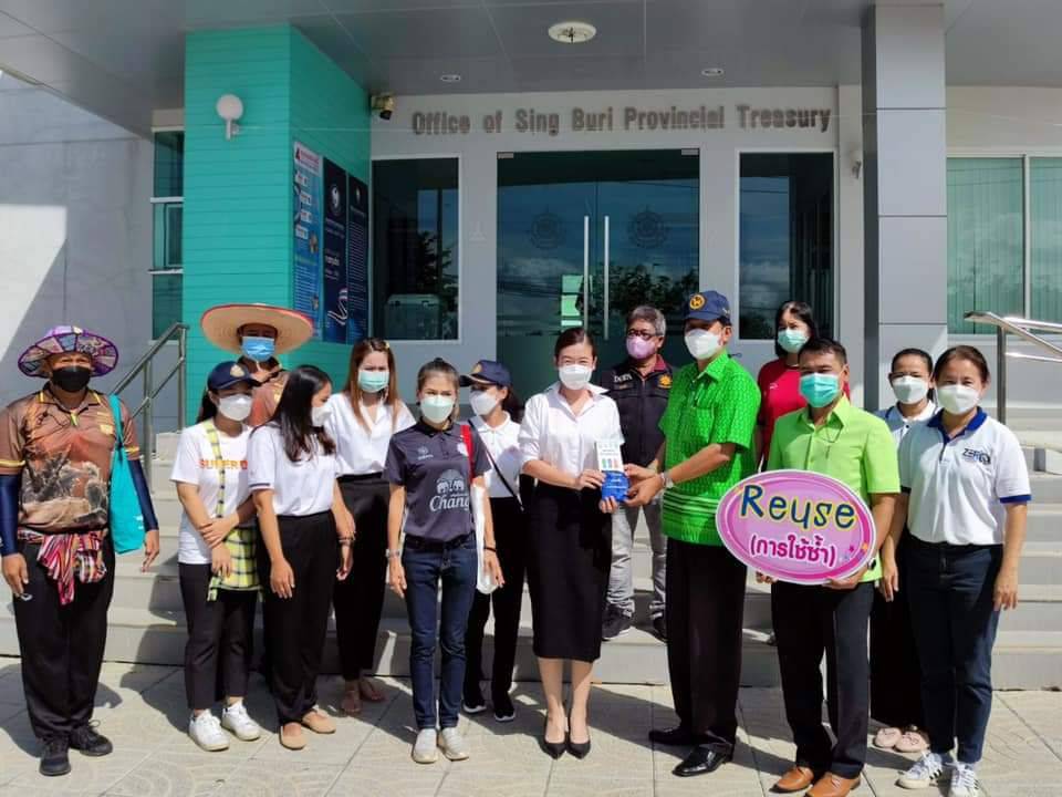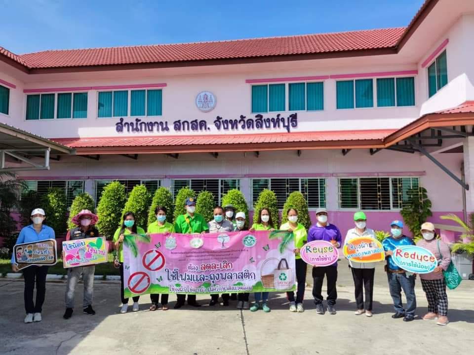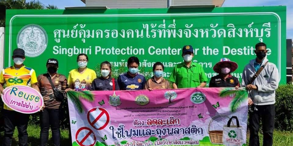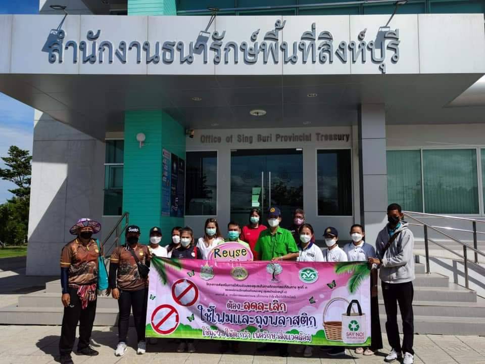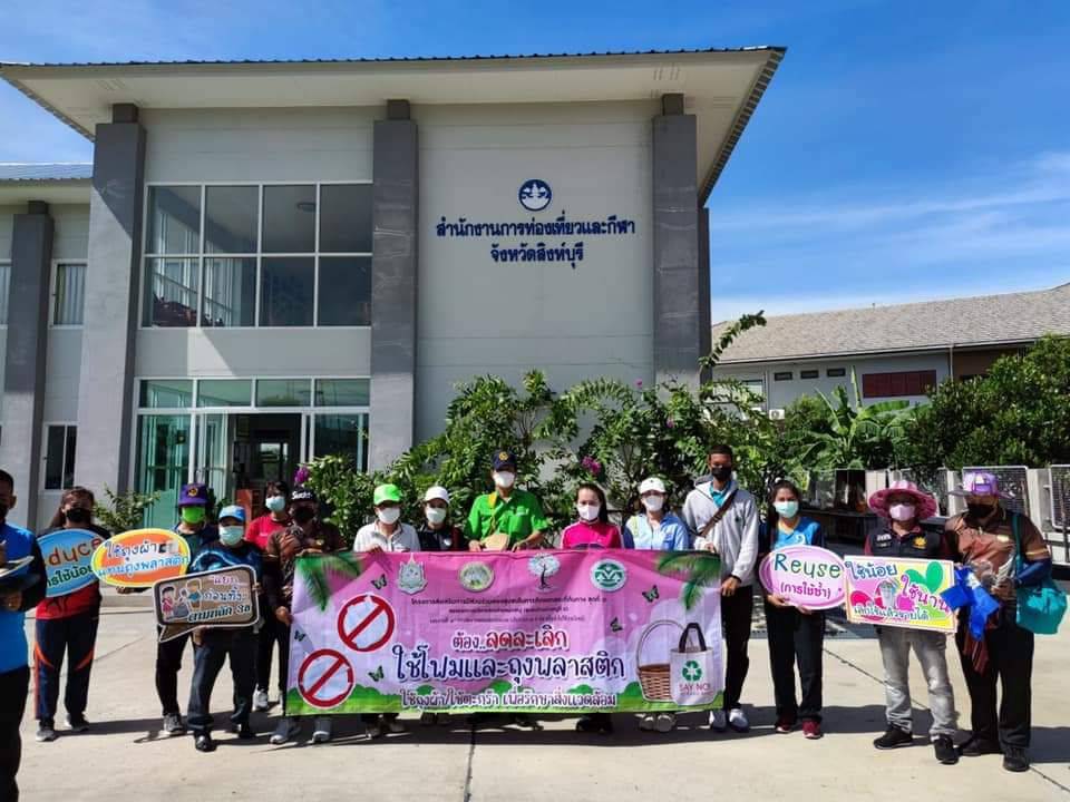 หัวหน้าส่วนราชการ ข้าราชการ พนักงาน เจ้าหน้าที่ ลูกจ้าง ผู้ใหญ่บ้าน ผู้ช่วยผู้ใหญ่บ้าน ฯลฯประชาชนในพื้นที่ และคณะกลองยาวจากตำบลต้นโพธิ์ ร่วมกิจกรรมดังกล่าว ณ องค์การบริหารส่วนตำบลม่วงหมู่ หมู่ที่ ๔ ตำบลม่วงหมู่ อำเภอเมืองสิงห์บุรี จังหวัดสิงห์บุรี จากนั้น ร่วมกันเดินรณรงค์ประชาสัมพันธ์ ให้ประชาชน ภาคราชการ และภาคเอกชน ในพื้นที่ชุมชนบ้านม่วงหมู่ มีส่วนร่วมในการลด คัดแยกขยะลดใช้ถุงพลาสติก โฟม