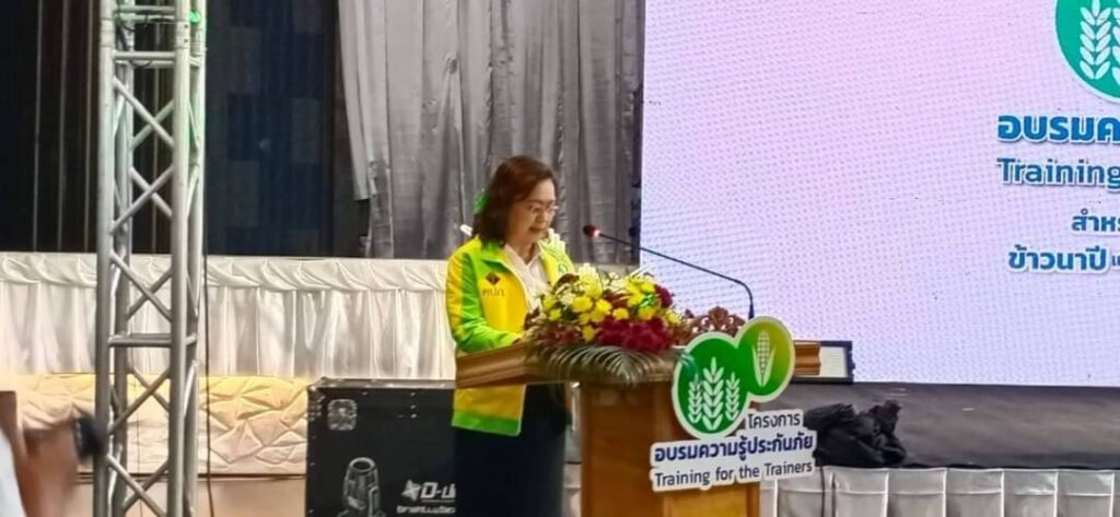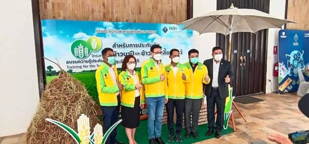 สำหรับกิจกรรมที่จัดขึ้นในครั้งนี้ สำนักงานคปภ. และหน่วยงานที่เกี่ยวข้อง ได้แก่ กรมส่งเสริมการเกษตร กรมป้องกันและบรรเทาสาธารณภัย ธนาคารเพื่อการเกษตรและสหกรณ์การเกษตร และสมาคมประกันวินาศภัยไทย โดยได้ดำเนินการโครงการดังกล่าวมาอย่างต่อเนื่อง ซึ่งในปีนี้เป็นปีที่ 7 โดยมีการพัฒนารูปแบบการดำเนินโครงการฯ ในการผลิตสื่อประชาสัมพันธ์เพื่อสร้างความรู้ความเข้าใจแก่กลุ่มเป้าหมาย เจ้าหน้าที่ผู้ปฏิบัติงานและเกษตรกรตลอดจนการลงพื้นที่เป้าหมาย การดำเนินการใน 2 จังหวัด ได้แก่ จังหวัดกาญจนบุรี (เดือนมิถุนายน 2565) และจังหวัดสงขลา (ในเดือนพฤศจิกายน 2565) โดยรูปแบบการดำเนินการตามโครงการ ฯ ก่อนวันจัดอบรม 1 วัน คณะผู้บริหารสำนักงานคปภ. ผู้บริหารสมาคมประกันวินาศภัยไทย และคณะวิทยากร จะมีการลงพื้นที่แลกเปลี่ยนและรับฟังความคิดเห็นข้อเสนอแนะ และสภาพปัญหาของเกษตรกร เพื่อนำข้อมูลดังกล่าวมาเป็นแนวทางในการพัฒนากรมธรรม์ประกันภัยข้าวนาปีและข้าวโพดเลี้ยงสัตว์