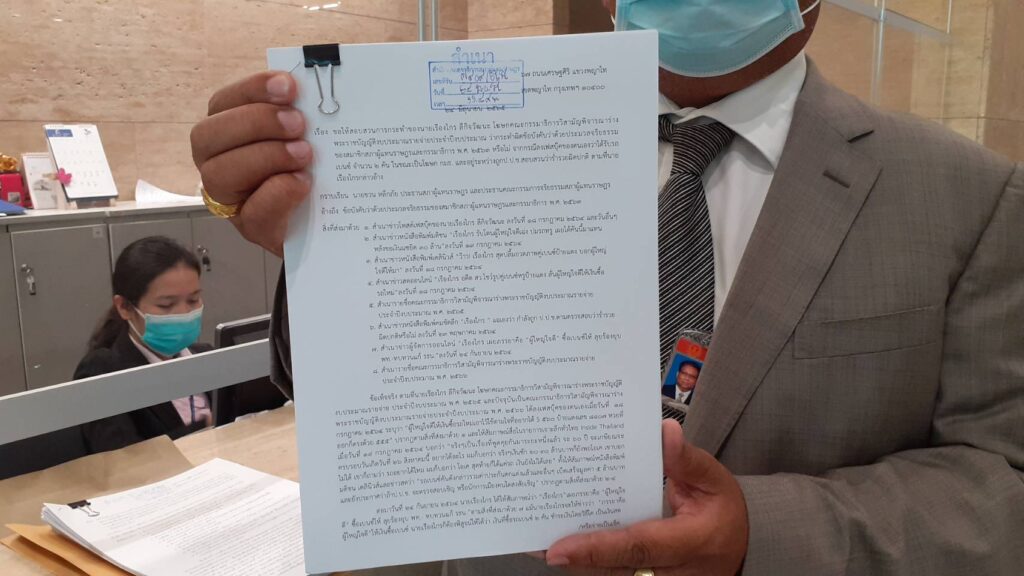ดังนั้น นายวัชระ เพชรทอง และว่าที่ร้อยตรี สุทธิศักดิ์ ประศาสน์ครุการ จึงขอร้องเรียนตามความประสงค์และความต้องการของนายเรืองไกร ลีกิจวัฒนะ โฆษกคณะกรรมาธิการวิสามัญฯ ที่เคยประกาศไว้ โดยขอร้องเรียนต่อคณะกรรมการจริยธรรมสภาผู้แทนราษฎรให้ตรวจสอบและสอบสวนนายเรืองไกร ซึ่งตามกฎหมายถือเป็นเจ้าหน้าที่ของรัฐ และขณะได้รับรถเบนซ์ทั้ง 2 คันนั้น ถือว่าเป็น “เจ้าหน้าที่ของรัฐ” แล้วและต้องปฏิบัติตามประมวลกฎหมายอาญา กฎหมาย ป.ป.ช. และประมวลจริยธรรมของสมาชิกสภาผู้แทนราษฎรและกรรมาธิการ พ.ศ. 2563 อย่างเคร่งครัด การที่นายเรืองไกร เป็นผู้ป่าวประกาศทางเฟสบุ๊คของตนเองอย่างเอิกเกริกว่าได้รับรถเบนซ์ราคา 5 ล้านบาท จากผู้ใหญ่ใจดีข้างต้น และรถเบนซ์สีขาวอีก 1 คัน (ไม่ระบุราคา) เท่ากับนายเรืองไกร ขณะดำรงตำแหน่งโฆษกคณะกรรมาธิการวิสามัญฯ ซึ่งเป็นเจ้าหน้าที่ของรัฐประกาศยอมรับต่อสาธารณชนว่าได้รับทรัพย์สินเกินกว่า 3 พันบาท อันเป็นการกระทำที่ขัดต่อพระราชบัญญัติประกอบรัฐธรรมนูญว่าด้วยการป้องกันและปราบปรามการทุจริต พ.ศ.2561 มาตรา 128 หรือไม่ และอาจมีความผิดตามกฎหมายอื่นหรือไม่ และเป็นการผิดข้อบังคับว่าด้วยประมวลจริยธรรมของสมาชิกสภาผู้แทนราษฎรและกรรมาธิการ พ.ศ. 2563 หรือไม่