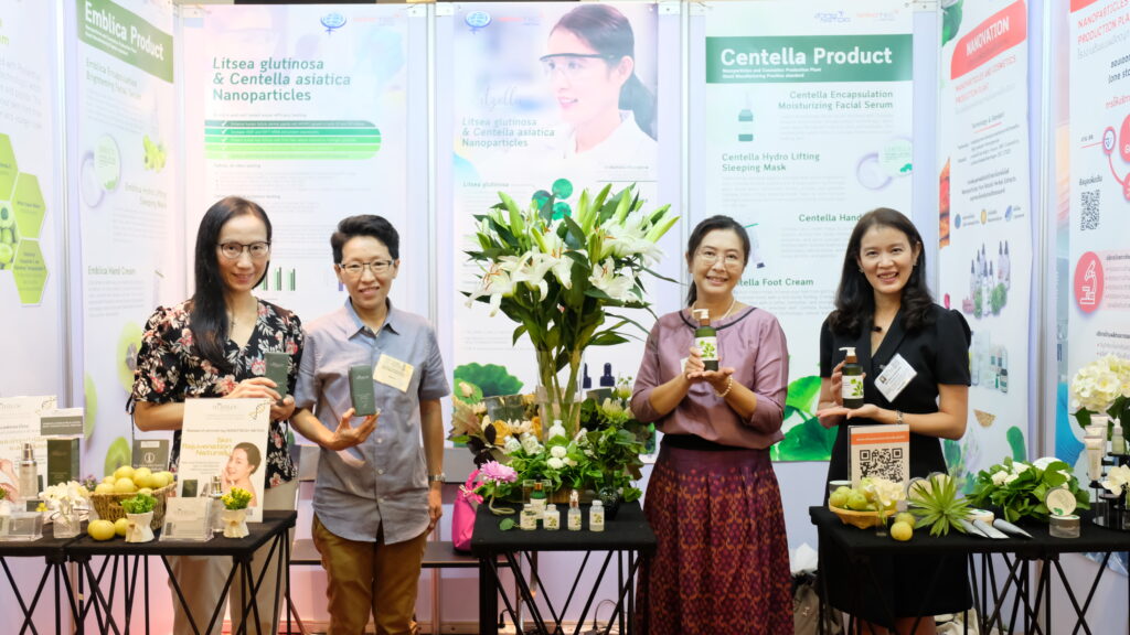 สำหรับในงานนี้ (สวทช.) ได้นำทัพนักวิจัยหญิงมาร่วมงานเพื่อแลกเปลี่ยนประสบการณ์การทำธุรกิจ การทำงาน การทำวิจัย การแก้ปัญหาเพื่อก้าวข้ามวิกฤต การสร้างทีม การสร้างแรงบันดาลใจ รวมถึงการสร้างความสัมพันธ์และเครือข่าย เพื่อเสริมความแข็งแกร่งในการพัฒนาวิทยาศาสตร์ เทคโนโลยีและนวัตกรรม ร่วมกันขับเคลื่อนพัฒนาเศรษฐกิจของประเทศให้มีความมั่นคงและยั่งยืน นอกจากนี้ยังได้นำผลงานวิจัยของ นาโนเทค-(สวทช.) และบริษัทที่ได้รับการถ่ายทอดเทคโนโลยีจาก (สวทช.) นำมาร่วมจัดแสดงนิทรรศการ ณ บูท B5 ซึ่งประกอบด้วย อนุภาคนาโนสารสกัดใบหมี่และบัวบก สำหรับผลิตภัณฑ์บำรุงเส้นผม (Litzella: Litzea glutinosa and Centella asiatica nanoparticle for haircare products),เซนเทลล่า มอยซ์เจอร์ไรซิ่ง เฟเชียล เซรั่ม (Centella Moisturizing Facial Serum),เซนเทลล่า แฮนด์ ครีม (Centella Hand cream),เอมบลิก้า เฟเชียล เซรั่ม (EmbLIca Facial serum),เอมบลิก้า แฮนด์ ครีม (EmbLIca Hand cream),เอมบลิก้า ไฮโดร ลิฟติ้ง สลิฟปิ้ง มาร์ก (Emblica Hydro Lifting SLEEPING mask),เซนเทลล่า ไฮโดร ลิฟติ้ง สลิฟปิ้ง มาร์ก (Centella Hydro Lifting Sleeping Mask),เซนเทลล่า ฟุต ครีม (Centella Foot Cream) และเฮิร์บล็อค เอ็มบลิก้า เอ็นแคปซูเลชั่น แอนไท-เอจจิ้ง เฟเชียล เซรั่ม (HERBLOC Emblica Encapsulation Anti-Aging Facial Serum) ผลิตจากสารสกัดธรรมชาติ เพื่อนำเสนอนวัตกรรมจากนักวิจัยหญิงไทยต่อผู้นำสตรีจากทั่วโลก ถึงศักยภาพนักวิจัยหญิงไทย” ดร.จุฬารัตน์ฯ กล่าวเสริม