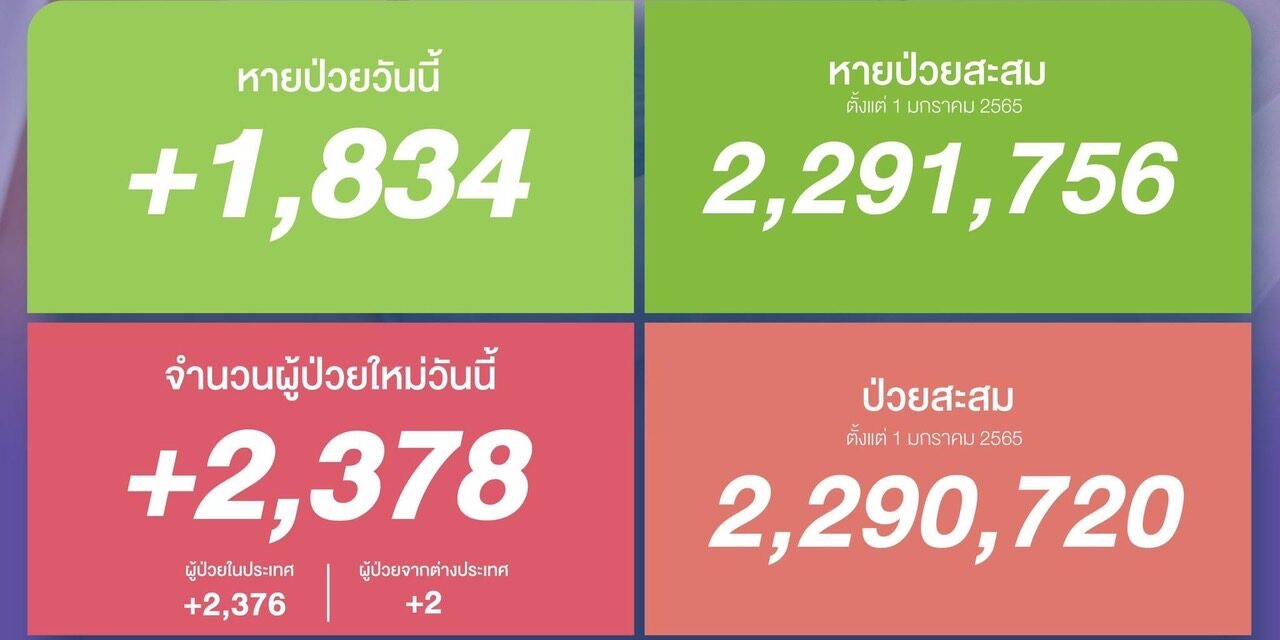 หายป่วยสะสม 2,291,756 ราย (ตั้งแต่ 1 มกราคม 2565)
