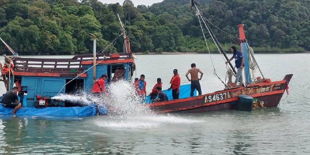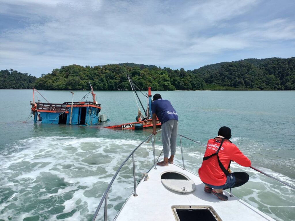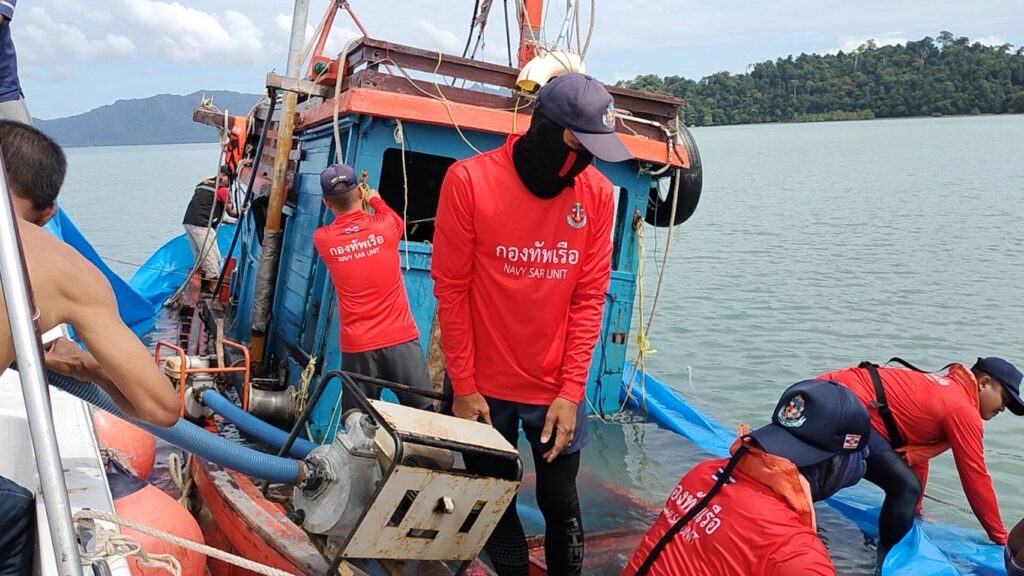 วันที่ 26 มิถุนายน 2565 เมื่อวานนี้เกิดลมฝน และในท้องทะเลมีคลื่นลมแรง ส่งผลทำให้เรือประมงของชาวจังหวัดสตูล โดยในเรือมีลูกเรืออยู่ประมาณ 3 คน และเรือประมงถูกคลื่นซัดจมลงทะเลจนทำให้คนในเรือลอยคอว่ายน้ำเพื่อเอาตัวรอดขณะเดียวกันเรือประมงอยู่ใกล้ๆพยามวิ่งผ่าคลื่นมาช่วยเหลือคนไว้ได้ ทราบต่อมาว่า ชื่อเรือพรชัยสมุทร 1 โดยเรือที่ประสบเหตุคลื่นลมแรงและจมลงขณะทำการประมงบริเวณอ่าวมะขาม อุทยานแห่งชาติหมู่เกาะตะรุเตา ต.เกาะสาหร่าย อ.เมือง จังหวัดสตูล เหตุเกิดเมื่อวานนี้ และในวันนี้ทาง ศูนย์บรรเทาสาธารณภัย ทัพเรือภาคที่ 3 โดยหน่วยรักษาความปลอดภัยทางทะเล กองทัพเรือ เกาะหลีเป๊ะ (นรภ.ทร.เกาะหลีเป๊ะ) และเรือ ต.996 ได้ นำเครื่องสูบน้ำเคลื่อนที่ จำนวน 3 เครื่อง เข้าให้ความช่วยเหลือในการกู้